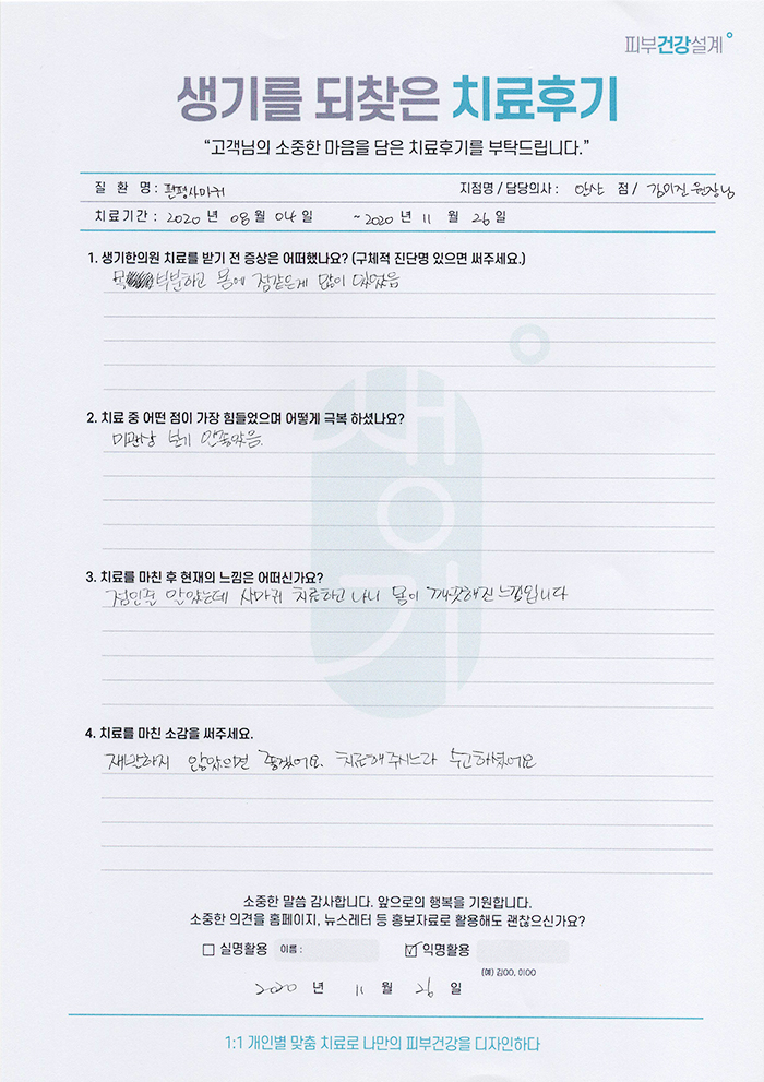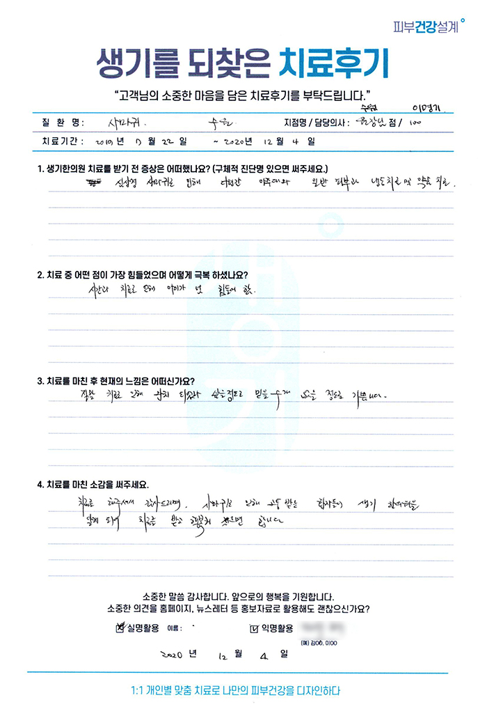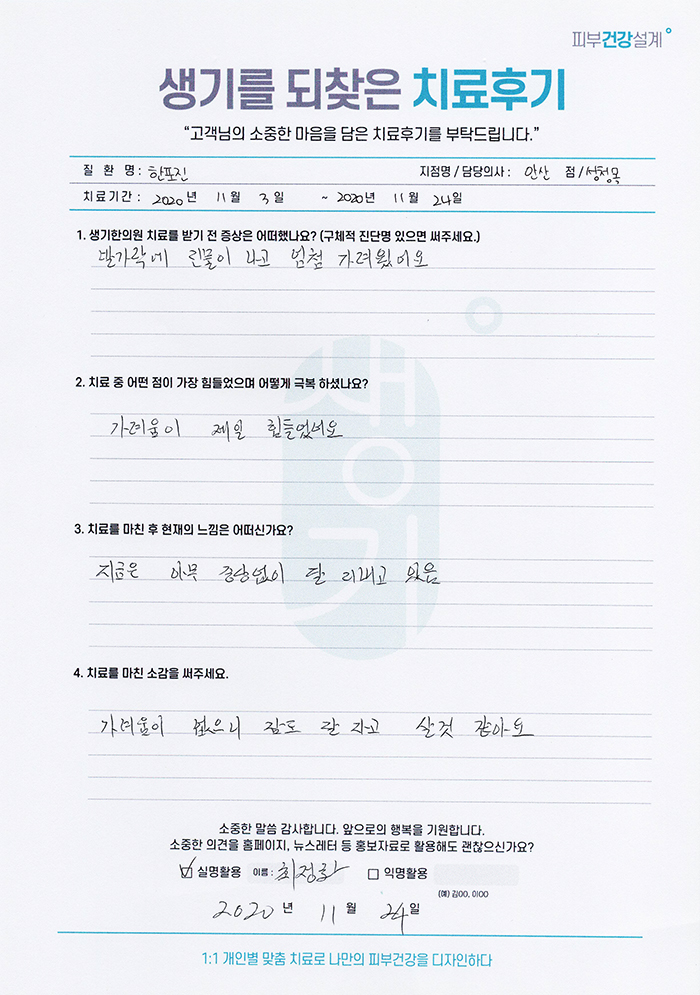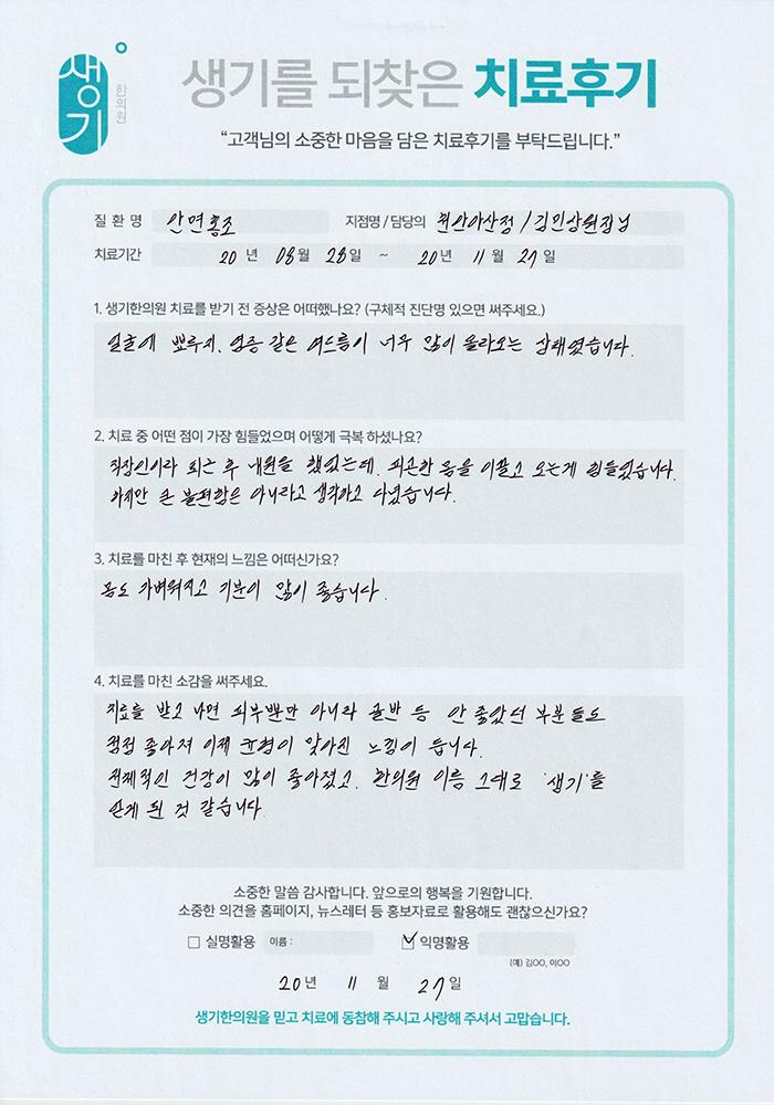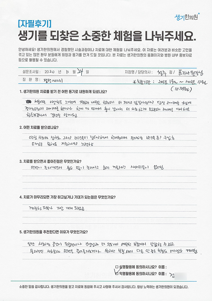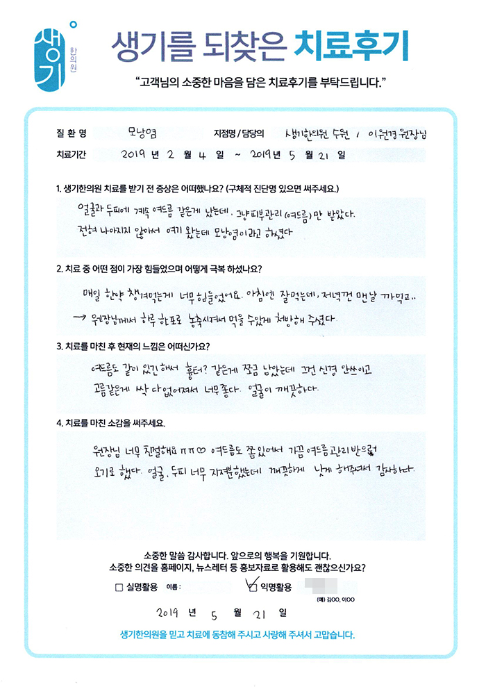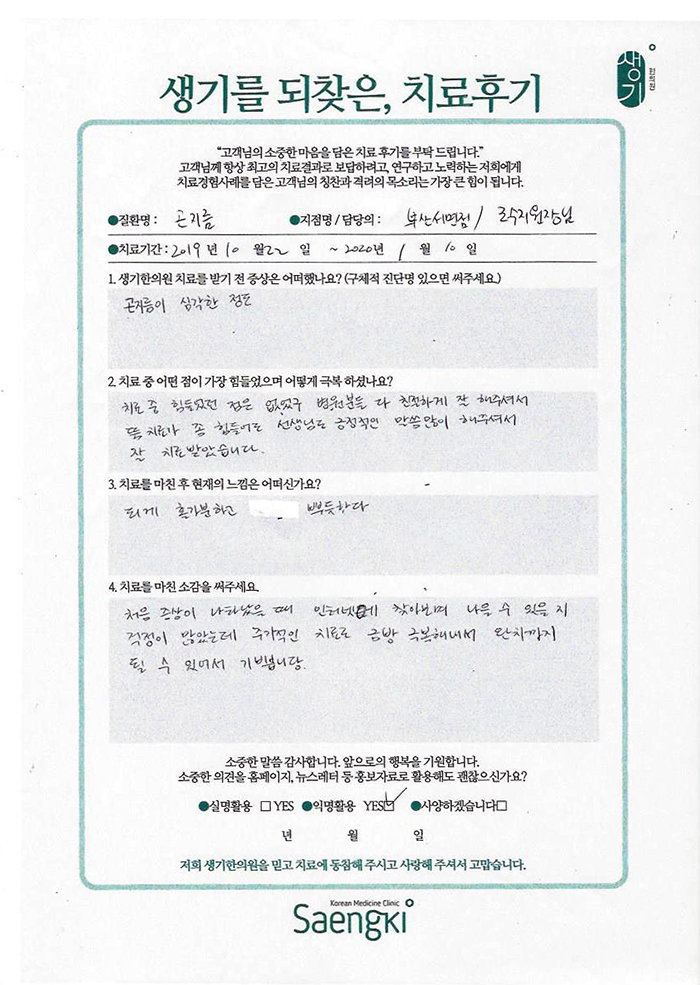 생기한의원과 함께하신 생생한 자필 및 영상 후기를 소개합니다.