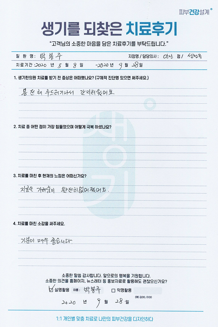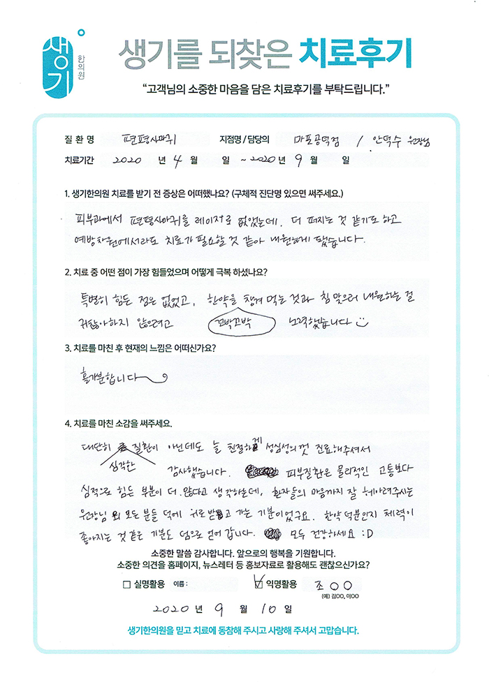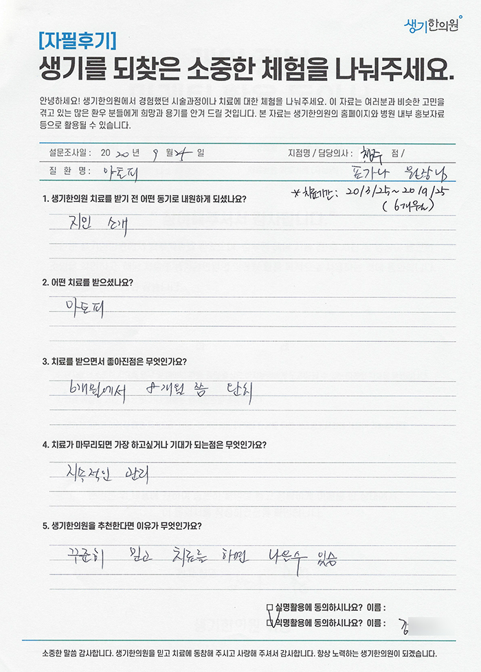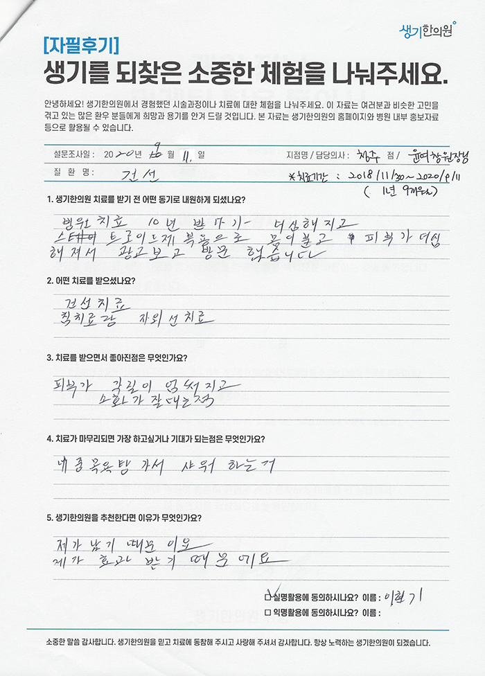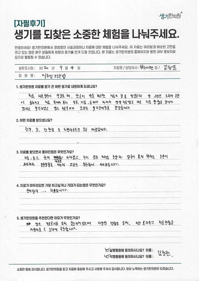 생기한의원과 함께하신 생생한 자필 및 영상 후기를 소개합니다.