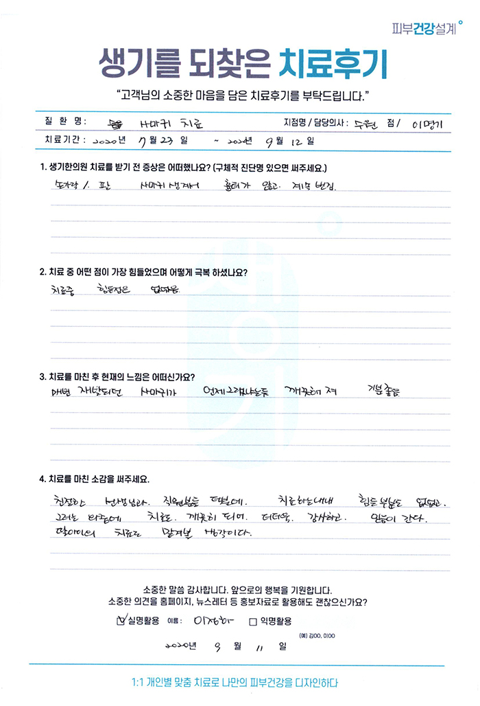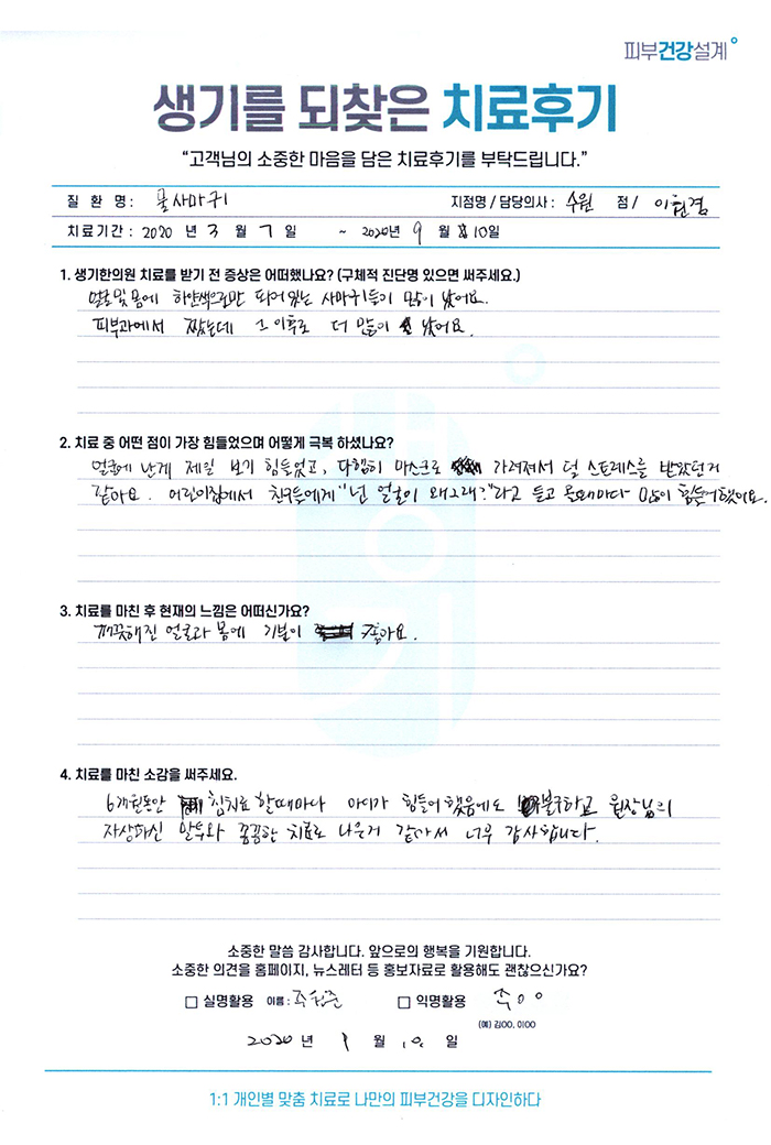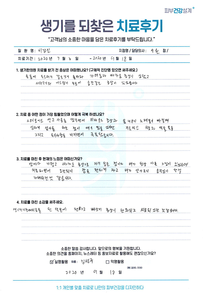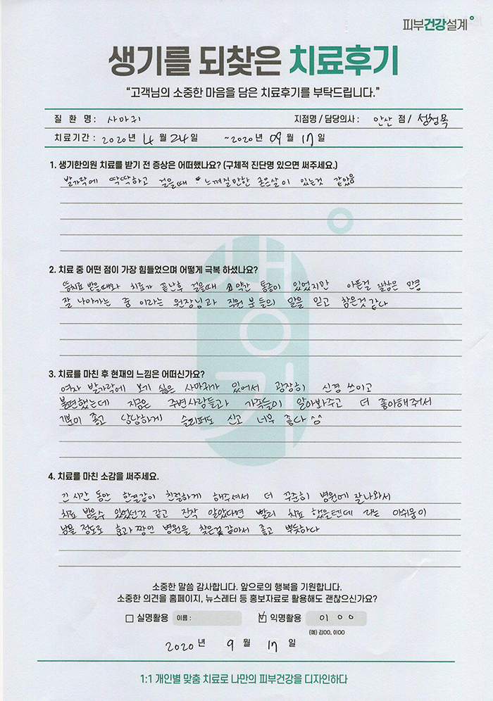 생기한의원과 함께하신 생생한 자필 및 영상 후기를 소개합니다.