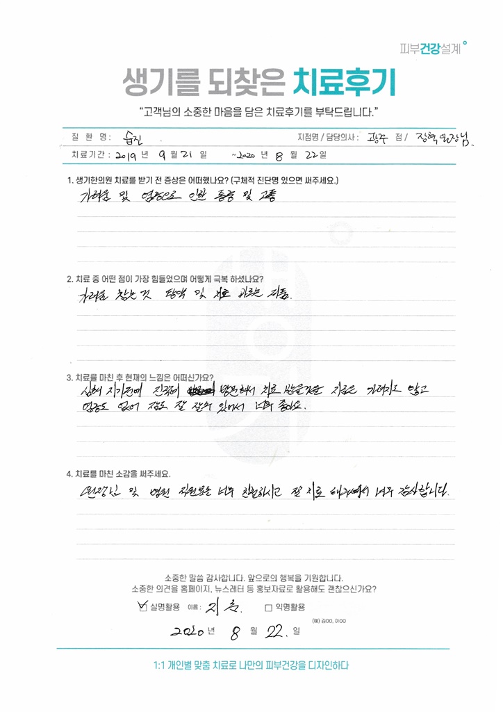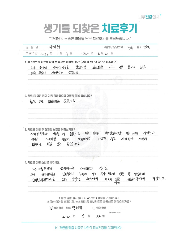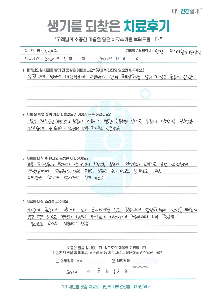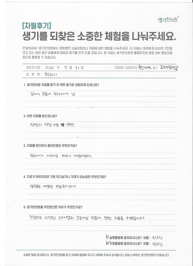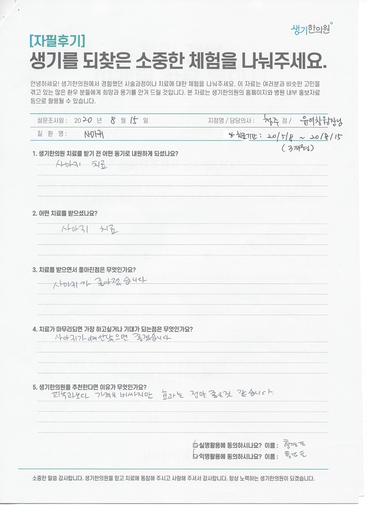 생기한의원과 함께하신 생생한 자필 및 영상 후기를 소개합니다.