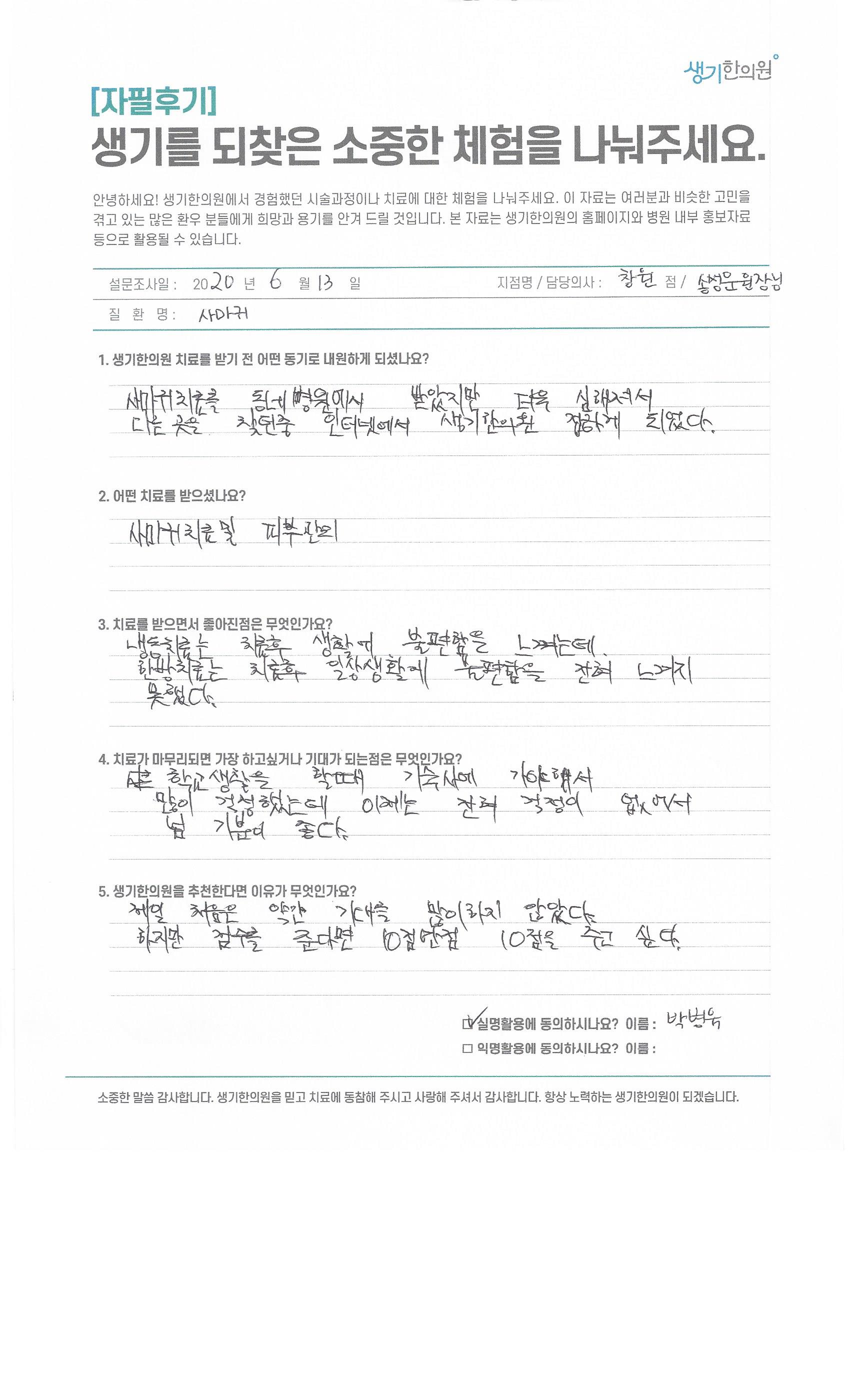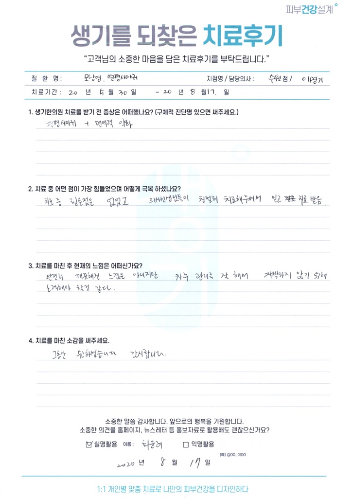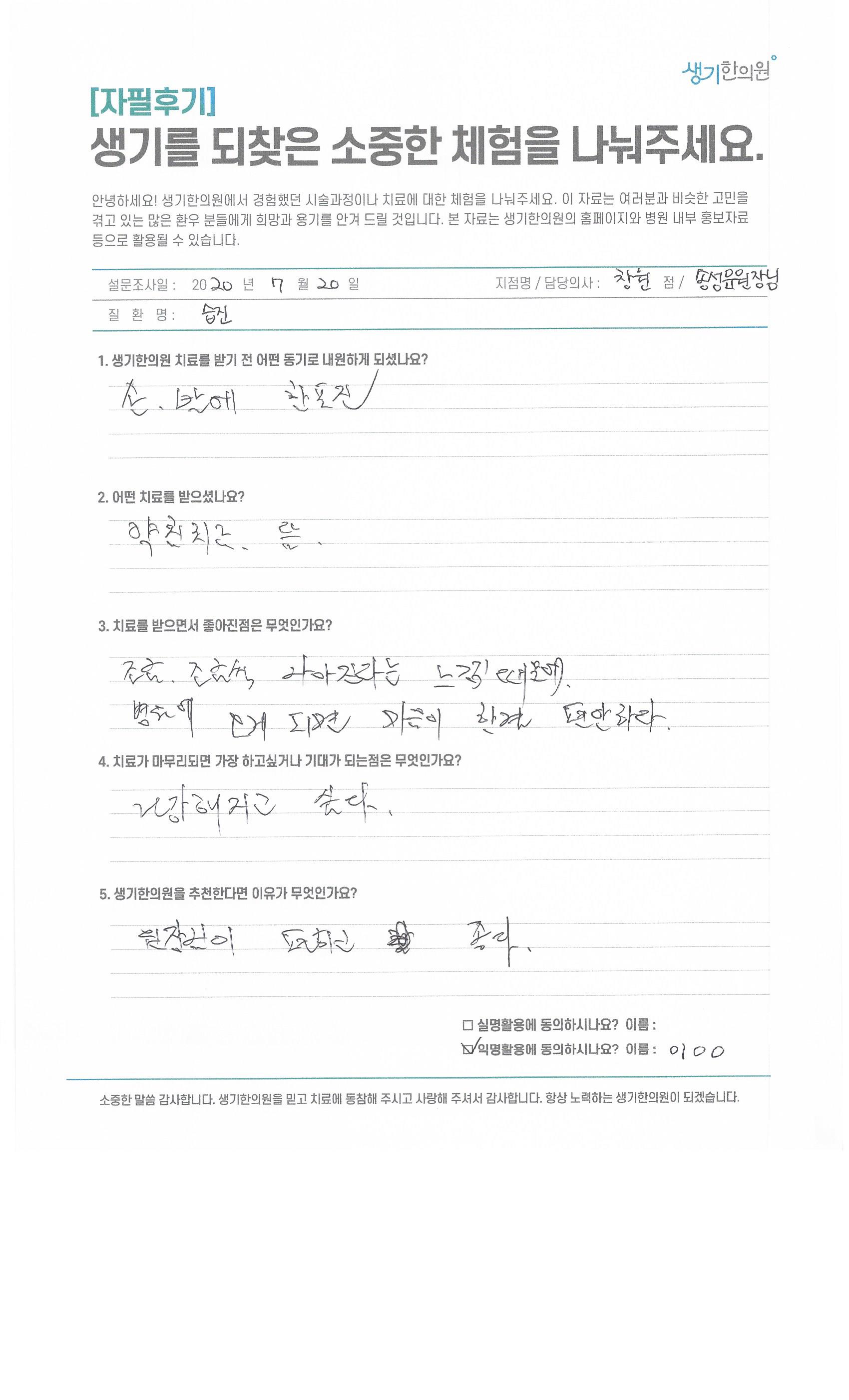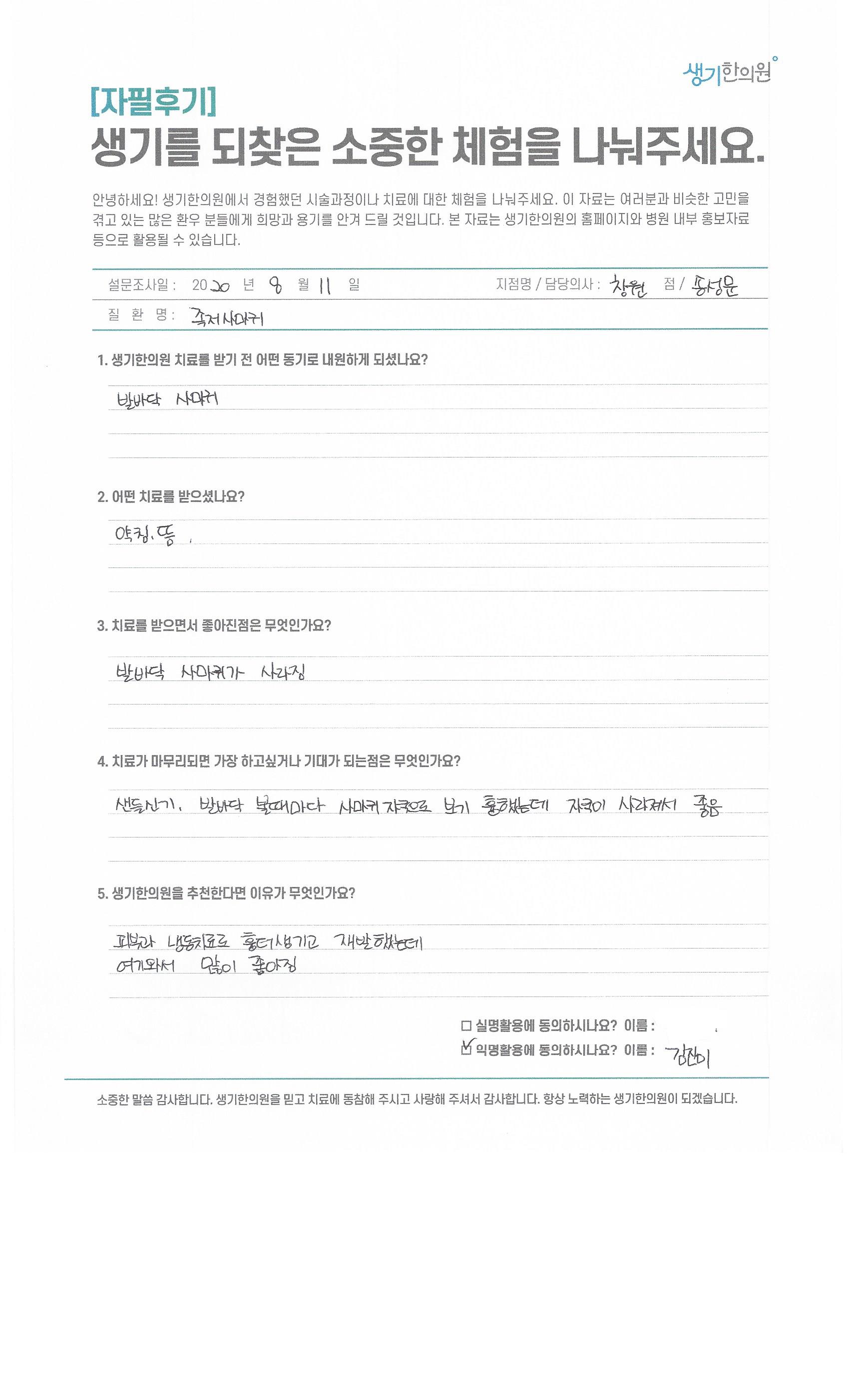 생기한의원과 함께하신 생생한 자필 및 영상 후기를 소개합니다.
