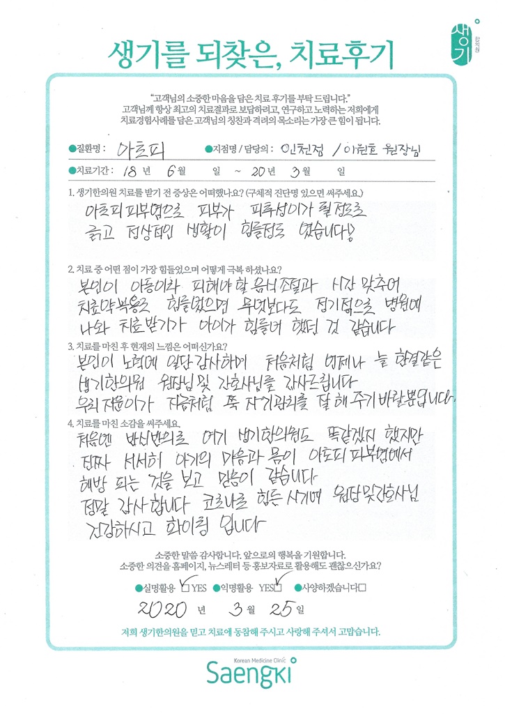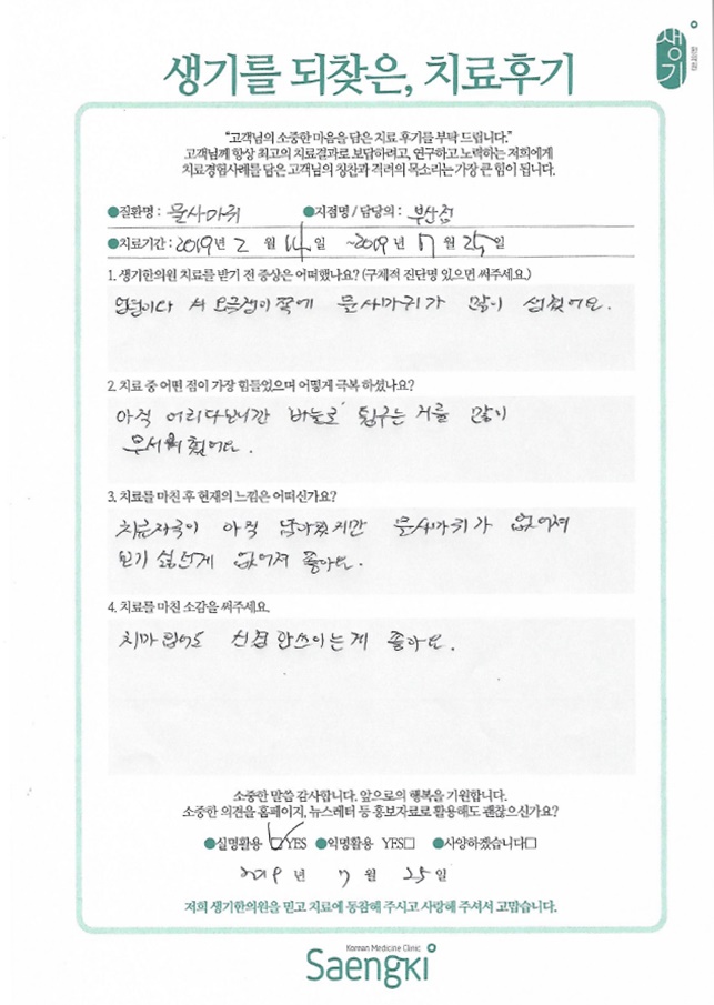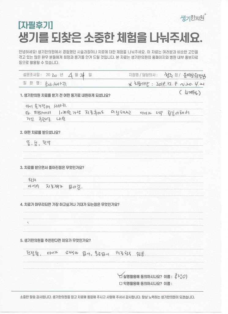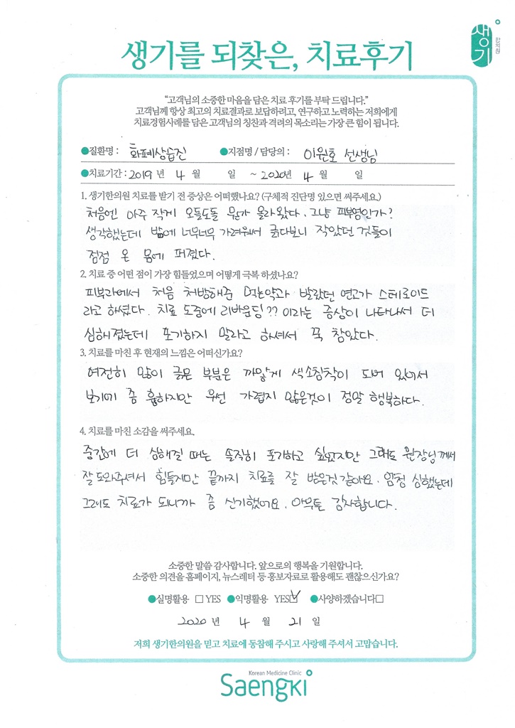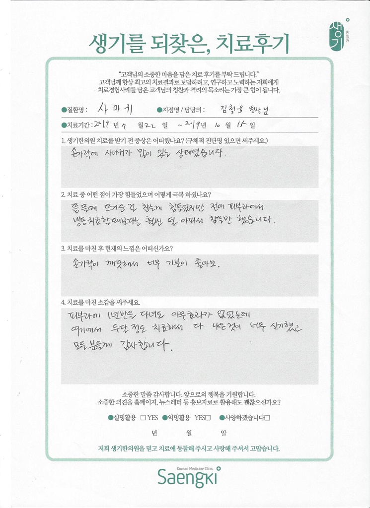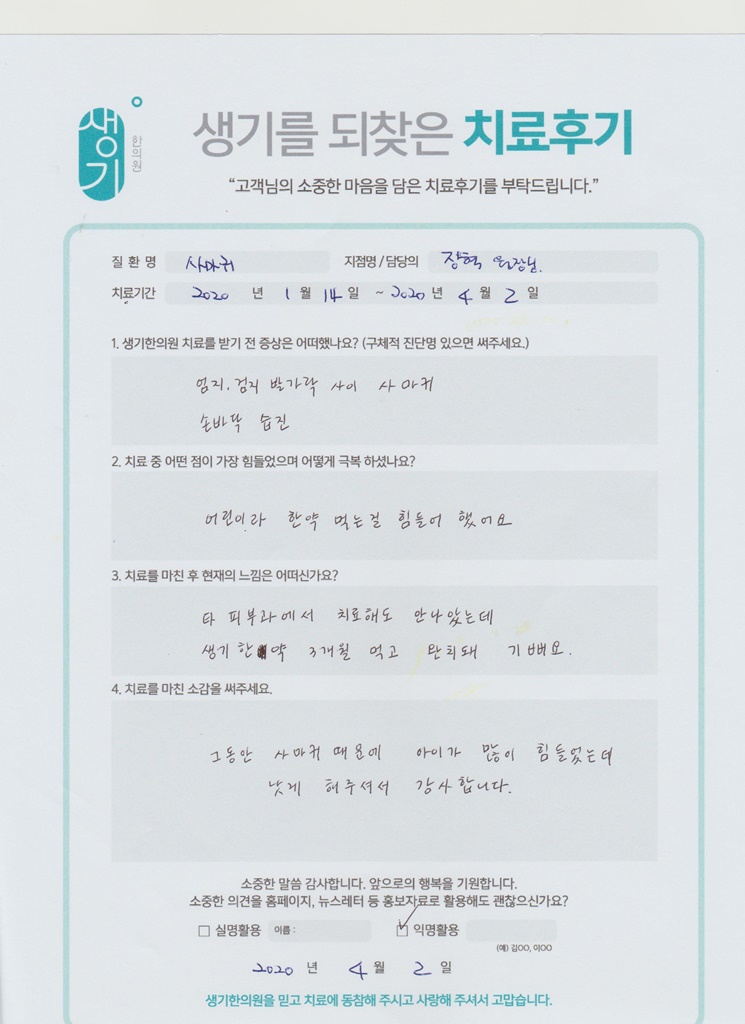 생기한의원과 함께하신 생생한 자필 및 영상 후기를 소개합니다.
