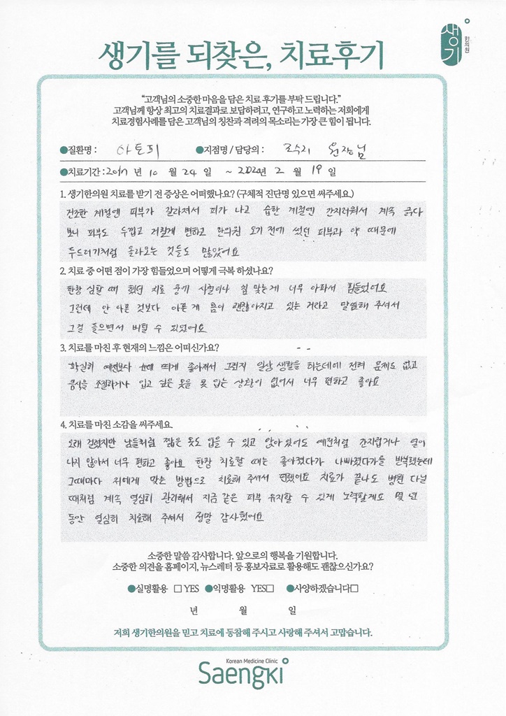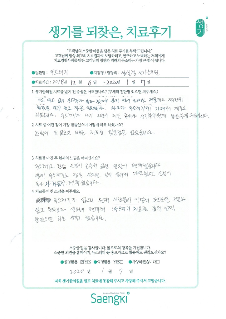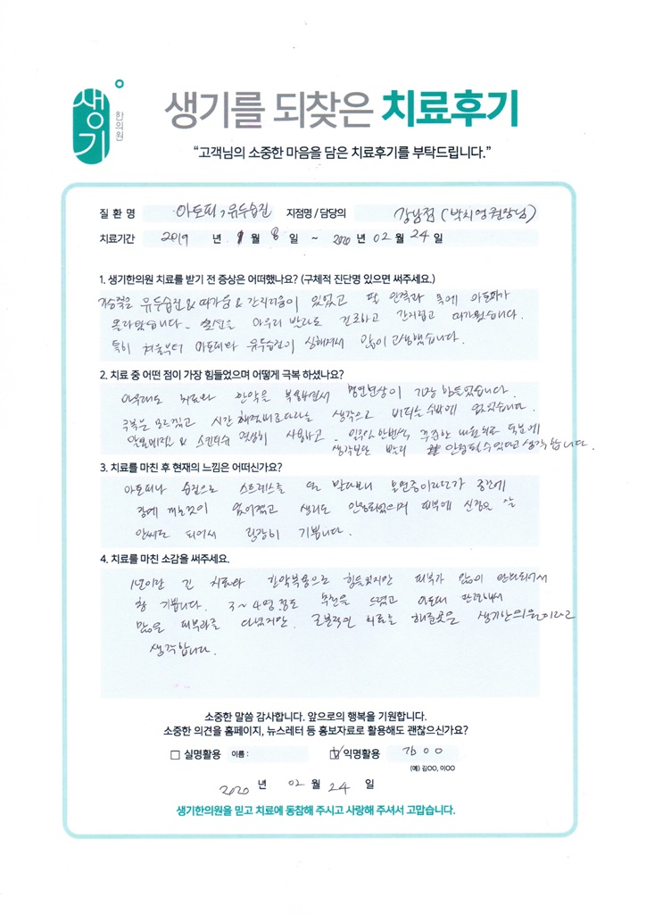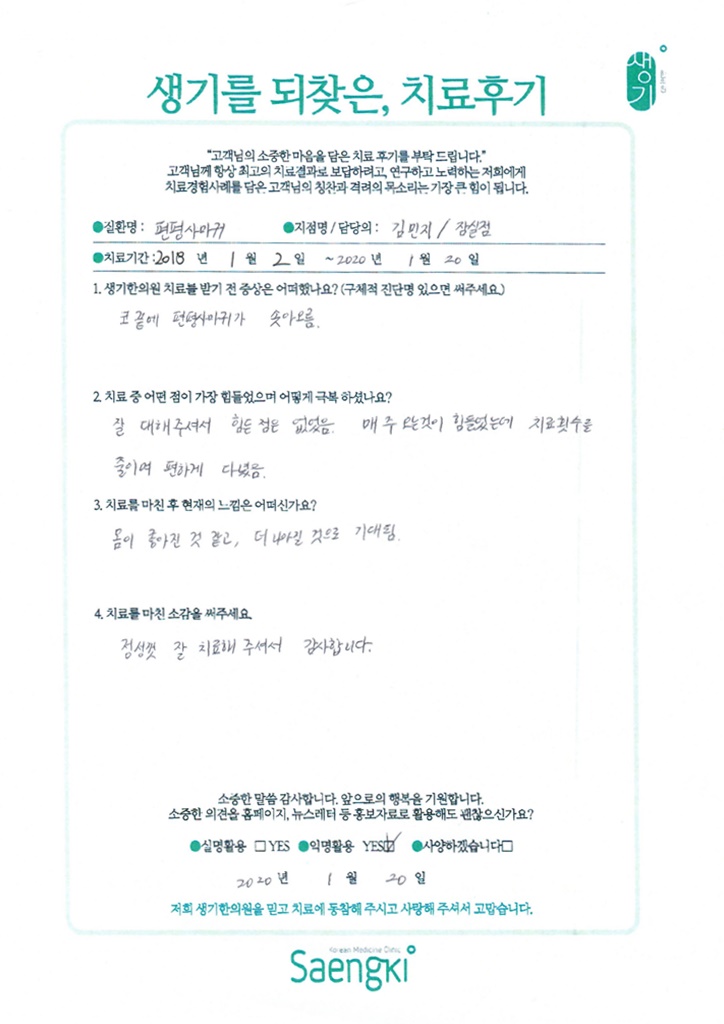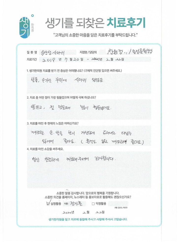 생기한의원과 함께하신 생생한 자필 및 영상 후기를 소개합니다.