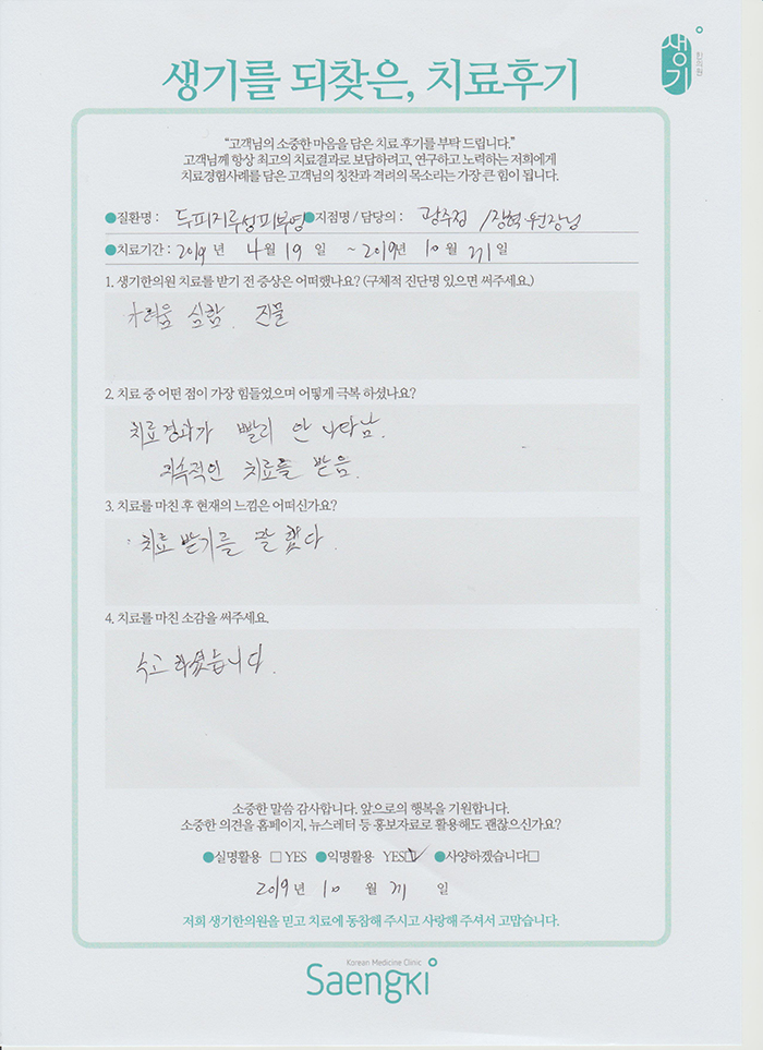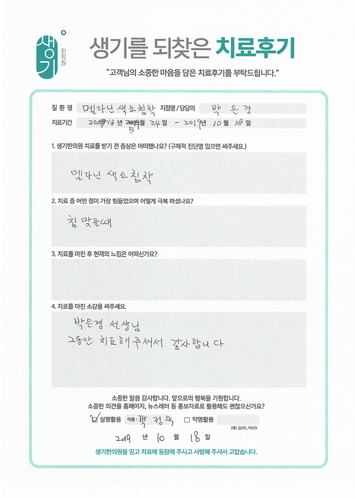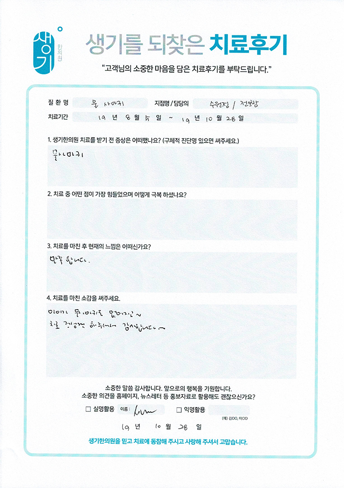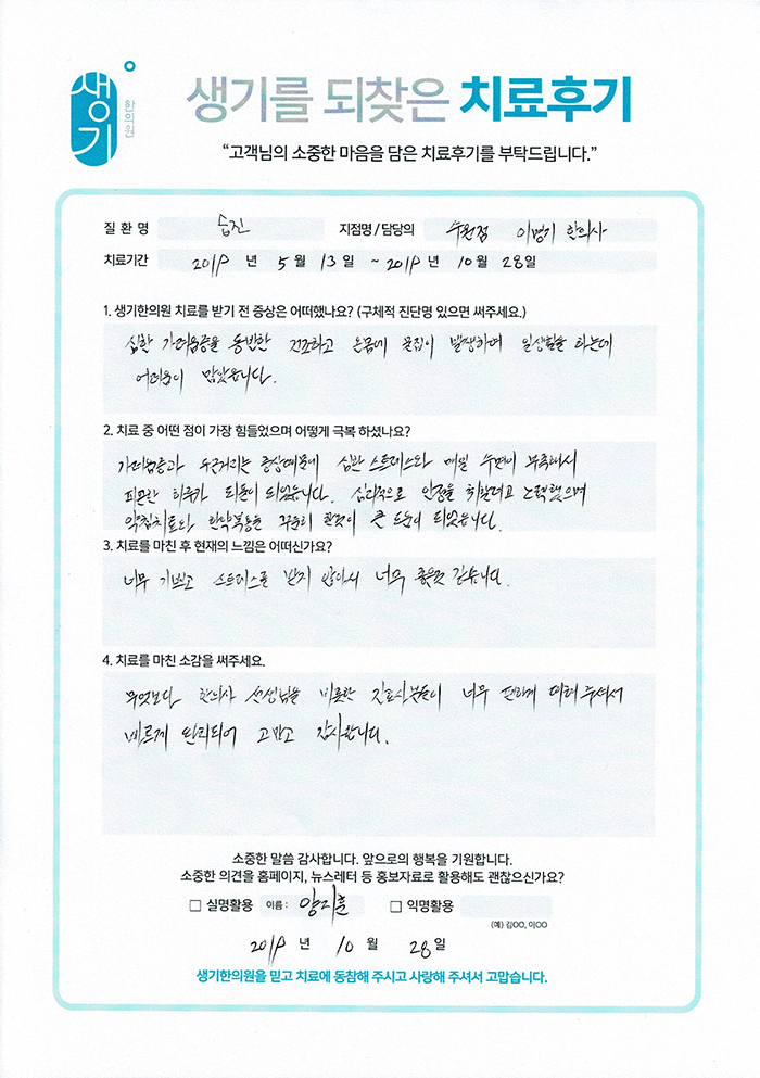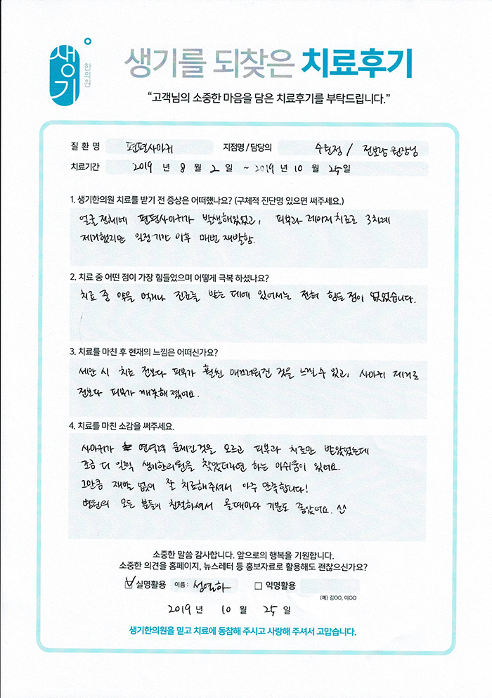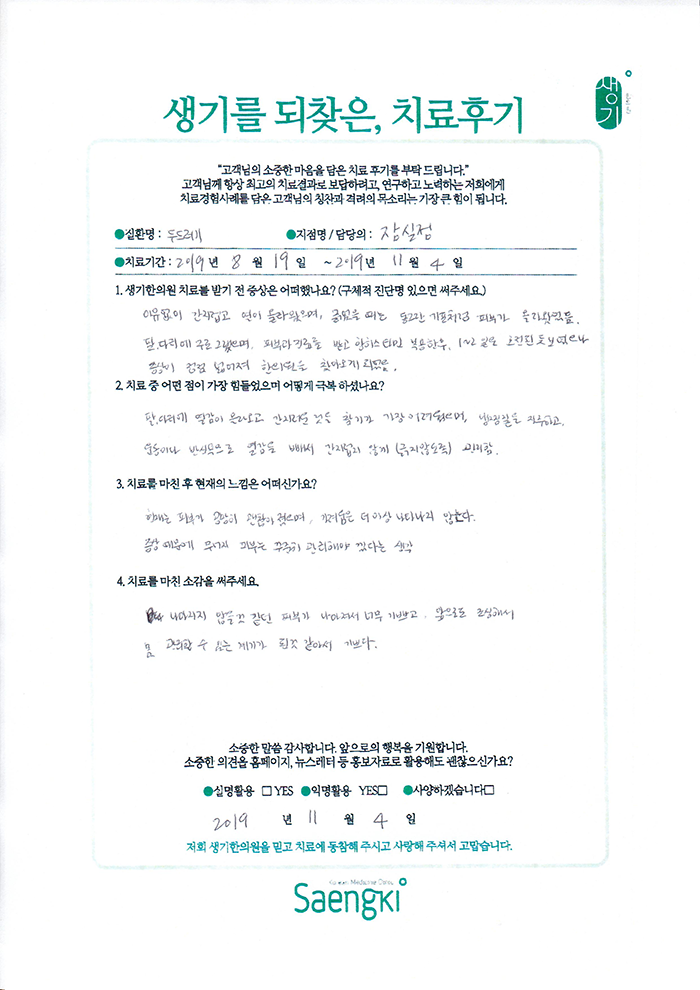 생기한의원과 함께하신 생생한 자필 및 영상 후기를 소개합니다.