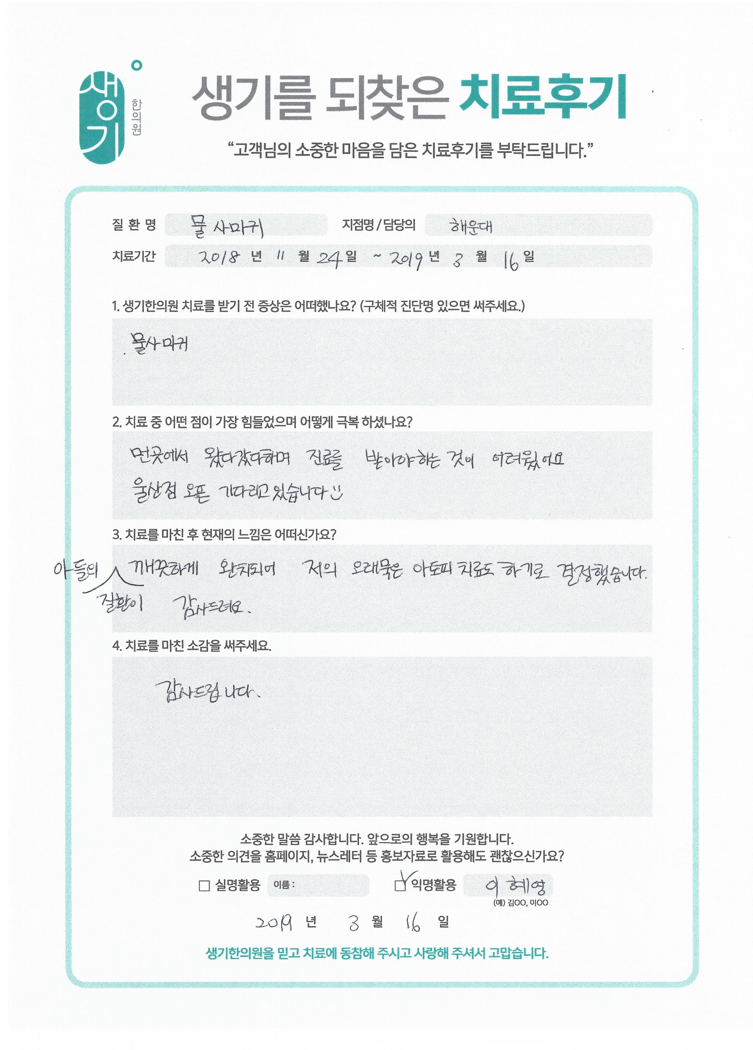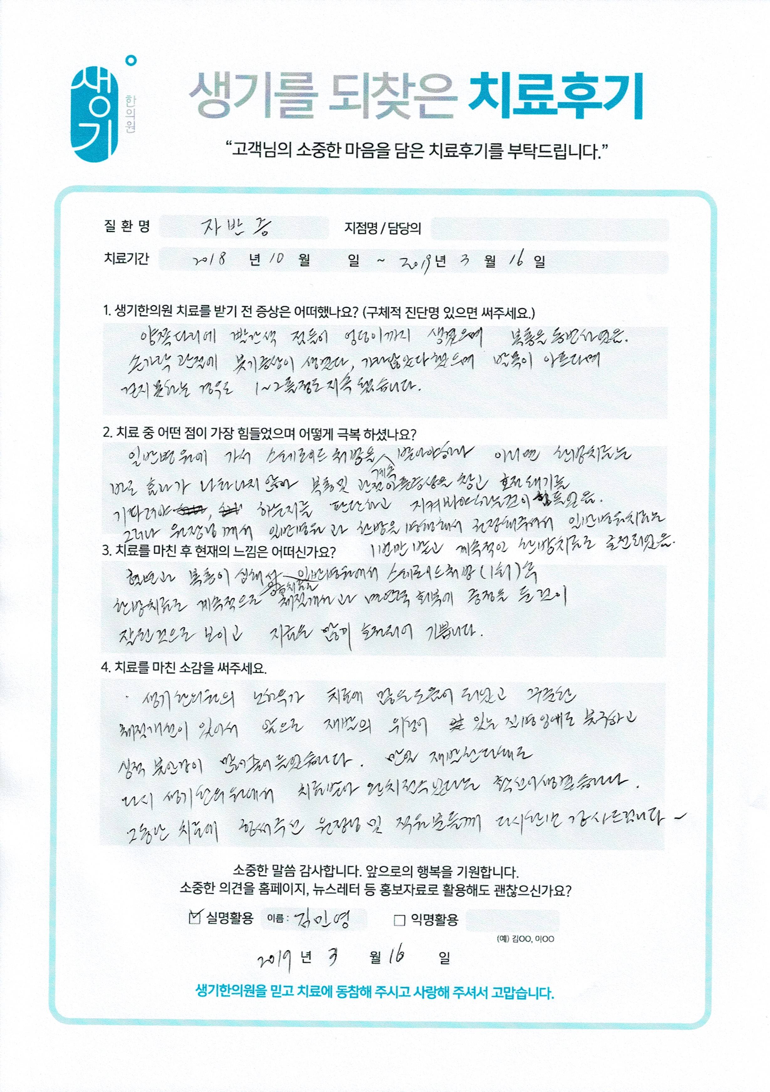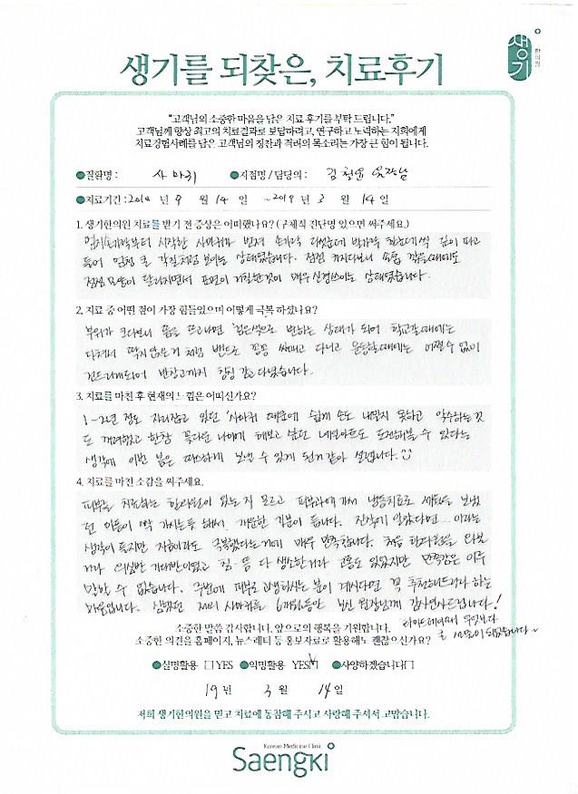 생기한의원과 함께하신 생생한 자필 및 영상 후기를 소개합니다.