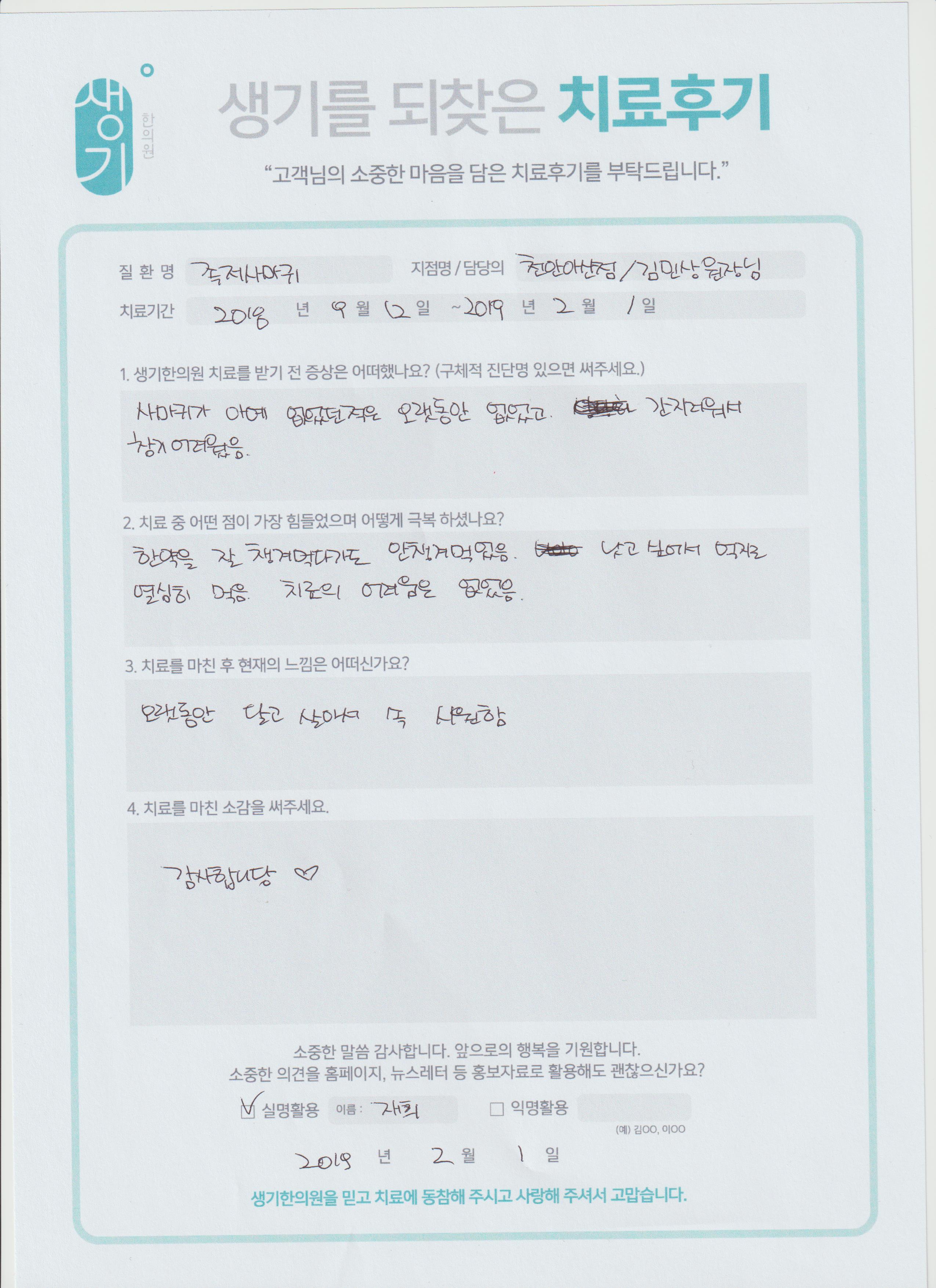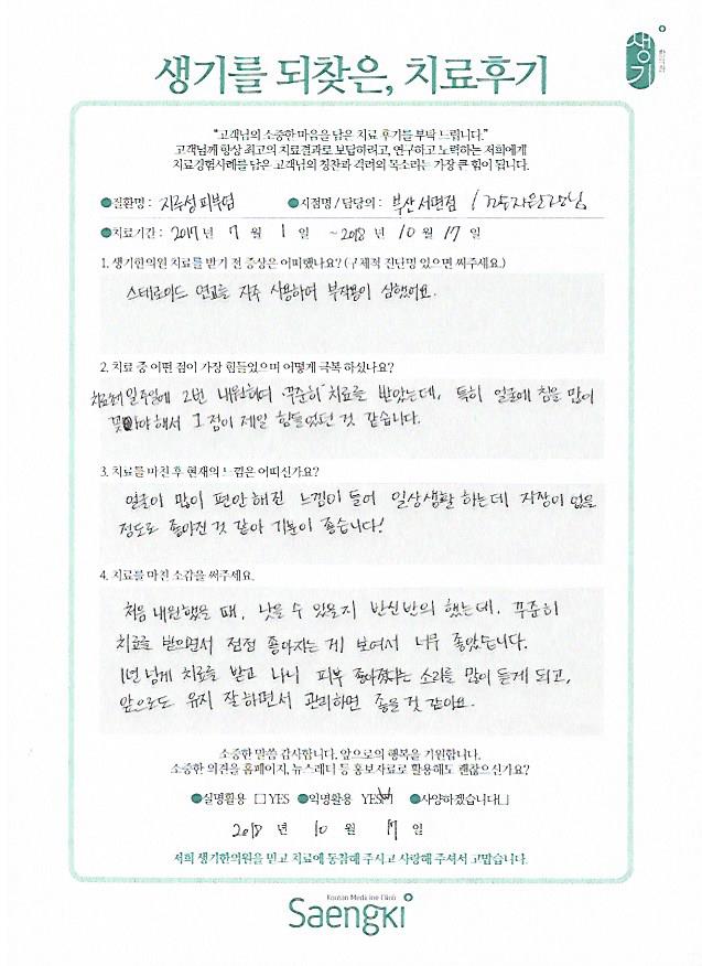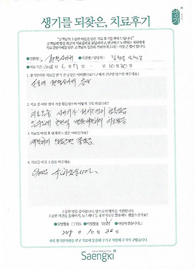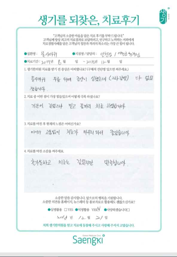 생기한의원과 함께하신 생생한 자필 및 영상 후기를 소개합니다.