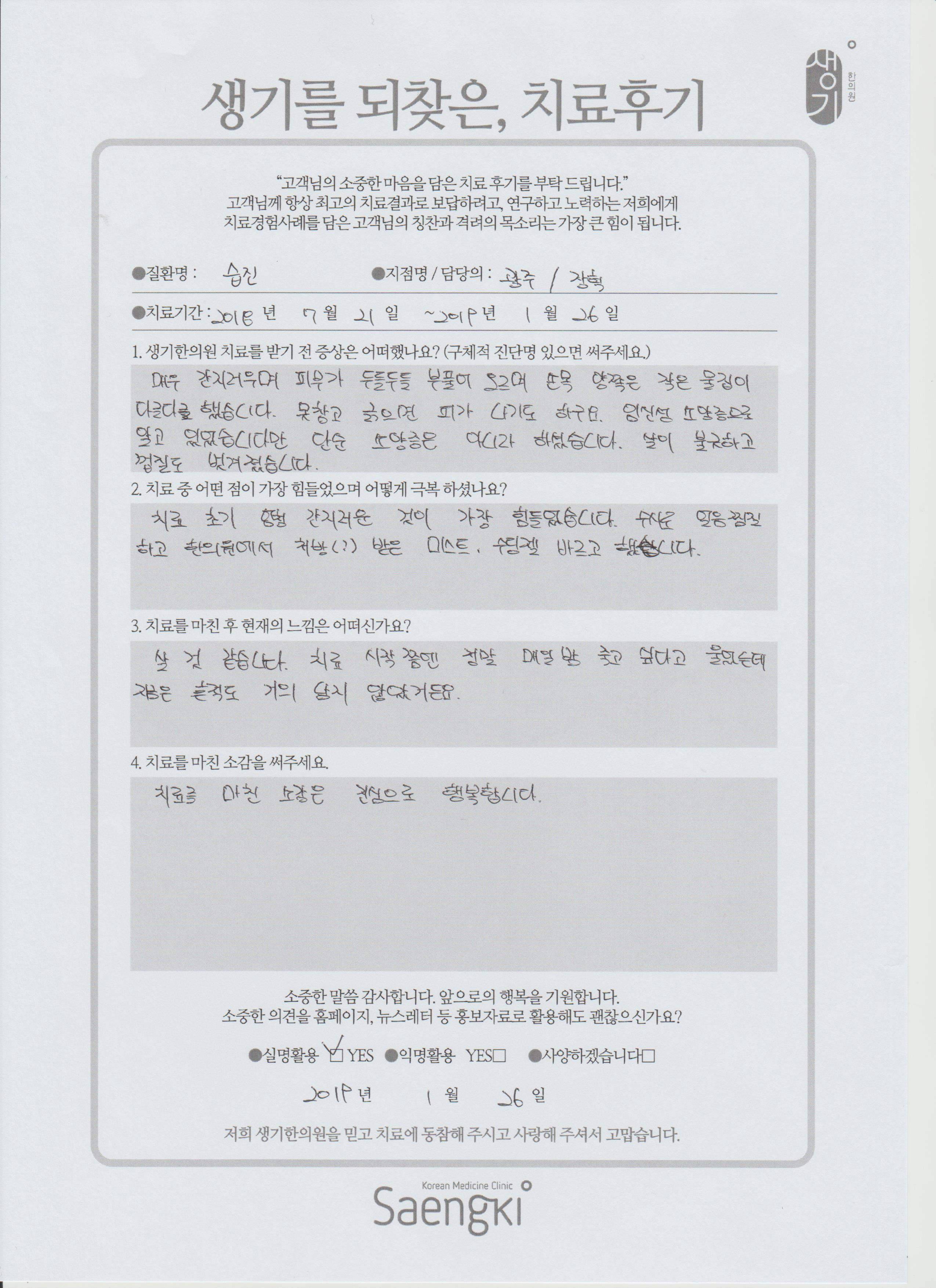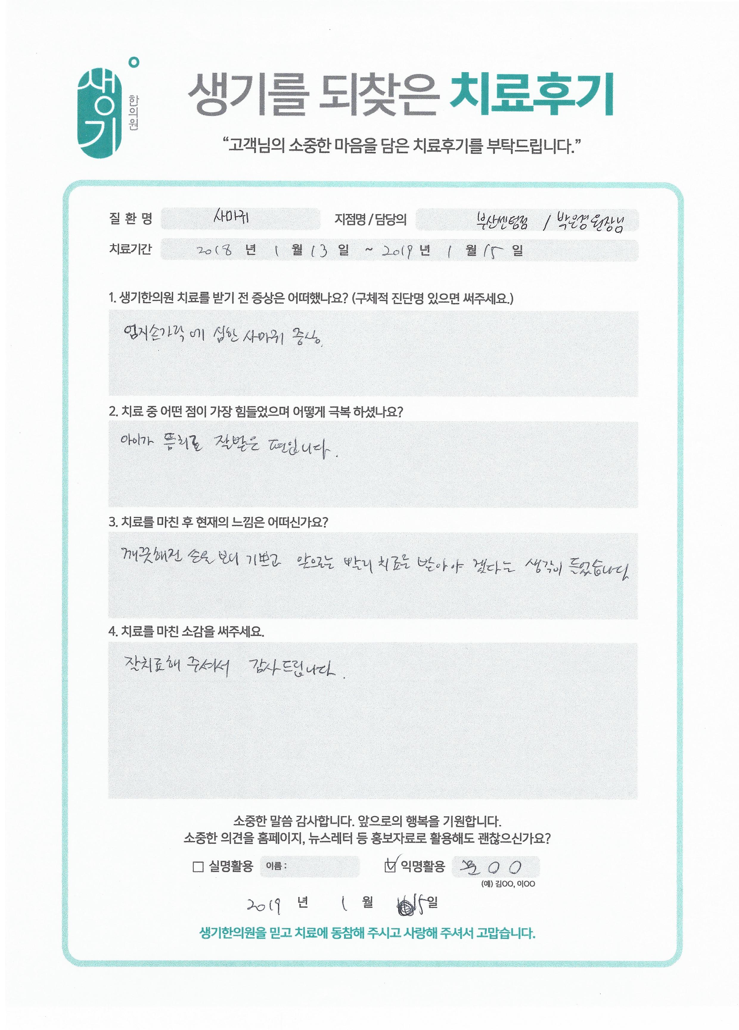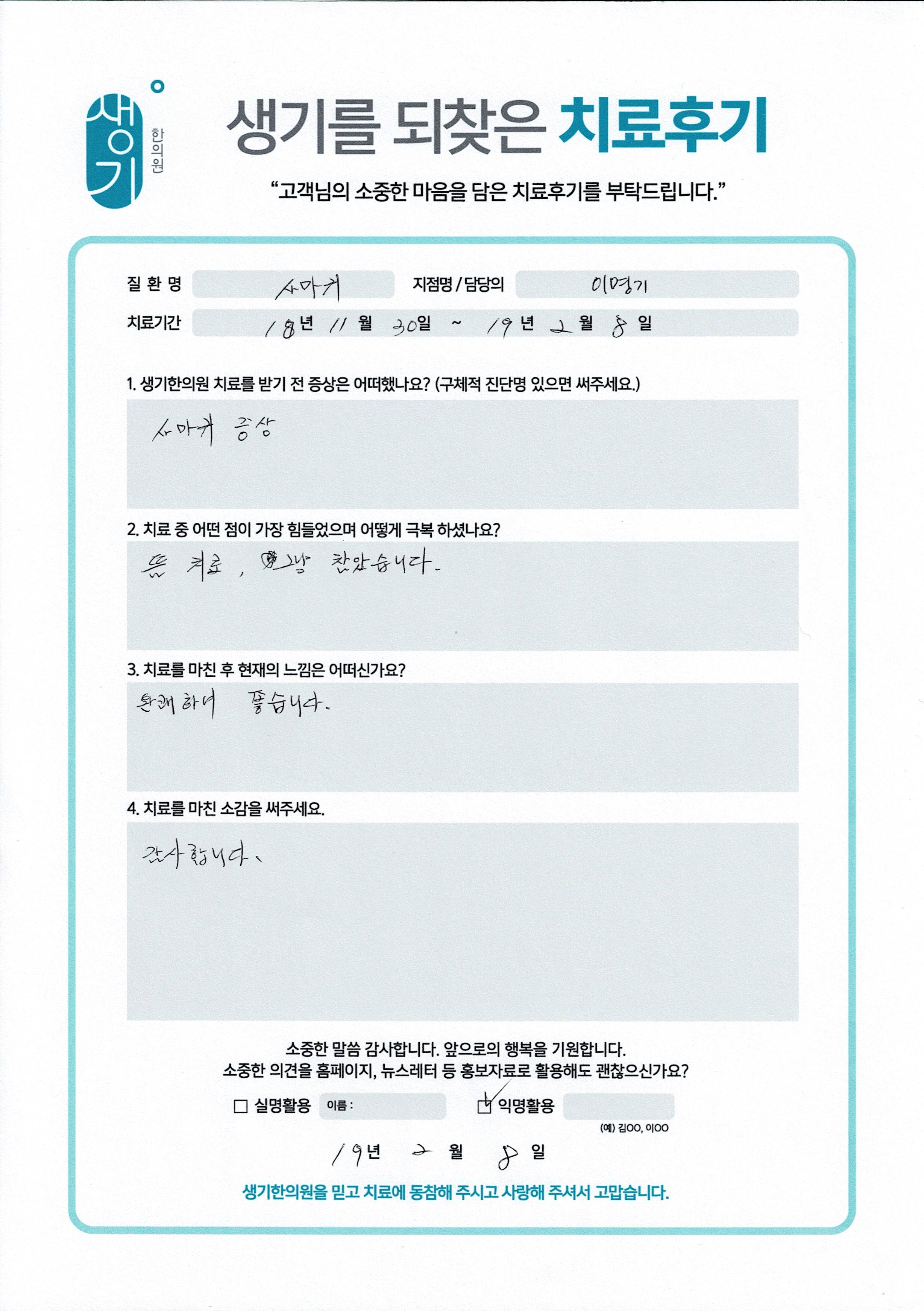 생기한의원과 함께하신 생생한 자필 및 영상 후기를 소개합니다.