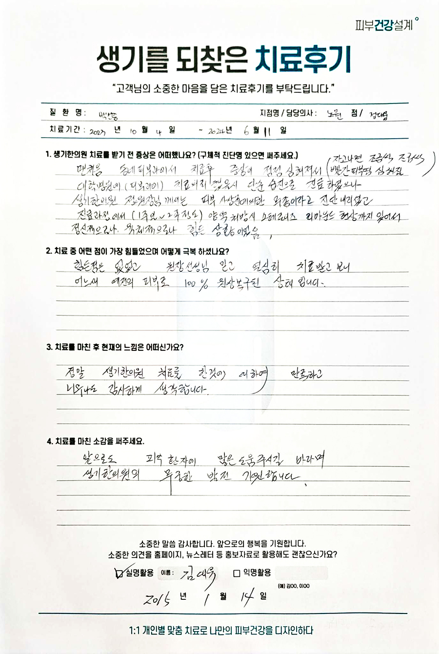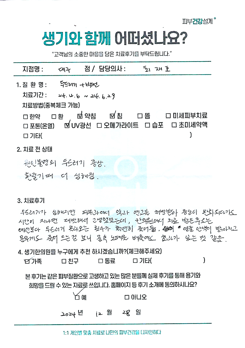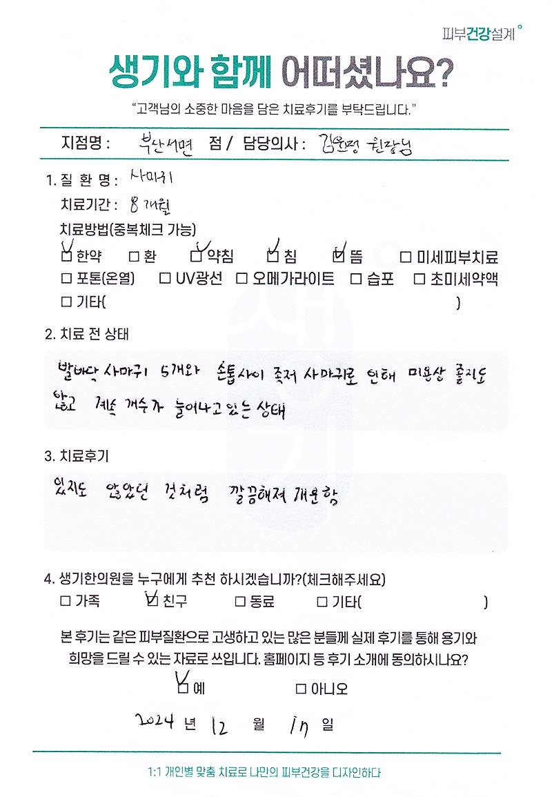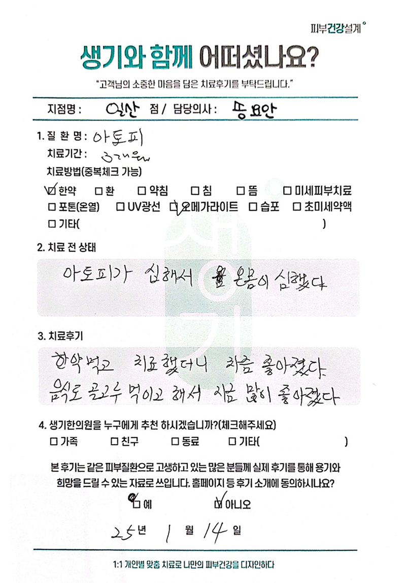생기한의원과 함께하신 생생한 자필 및 영상 후기를 소개합니다.