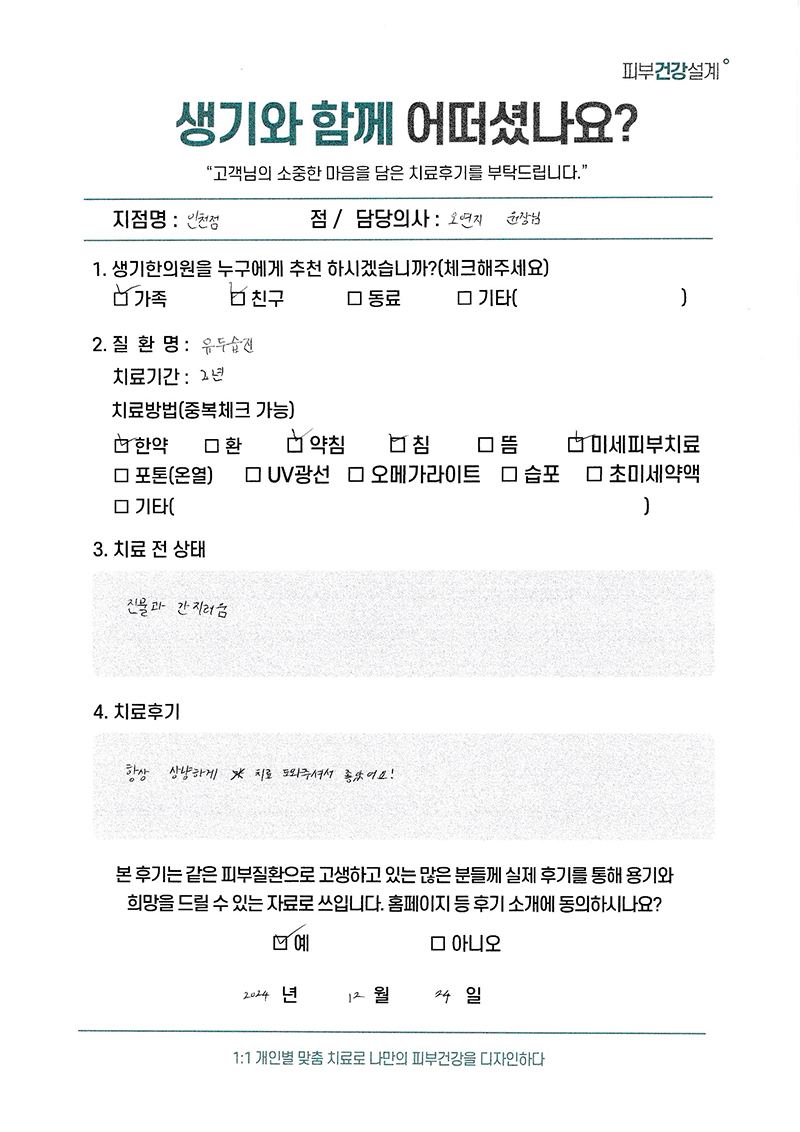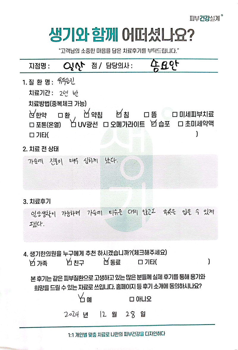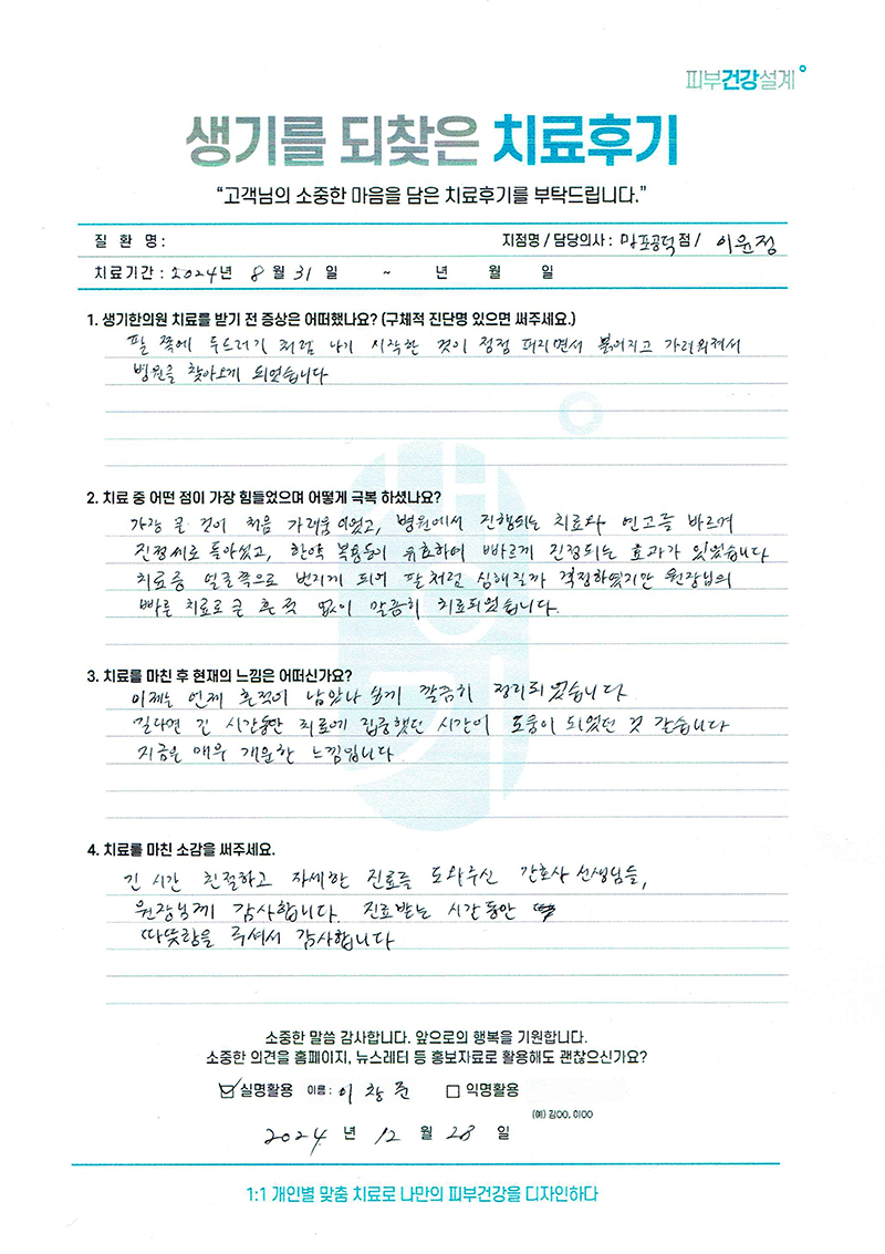 생기한의원과 함께하신 생생한 자필 및 영상 후기를 소개합니다.