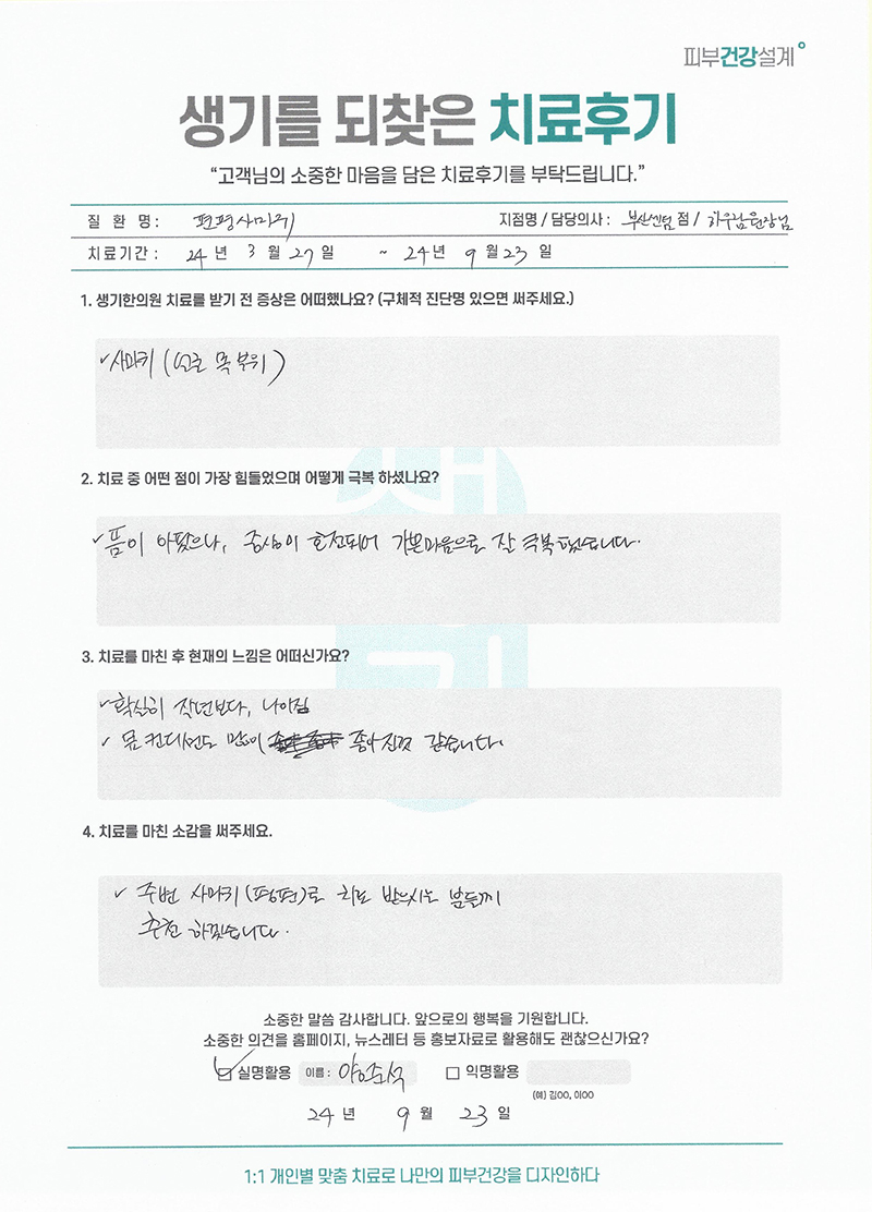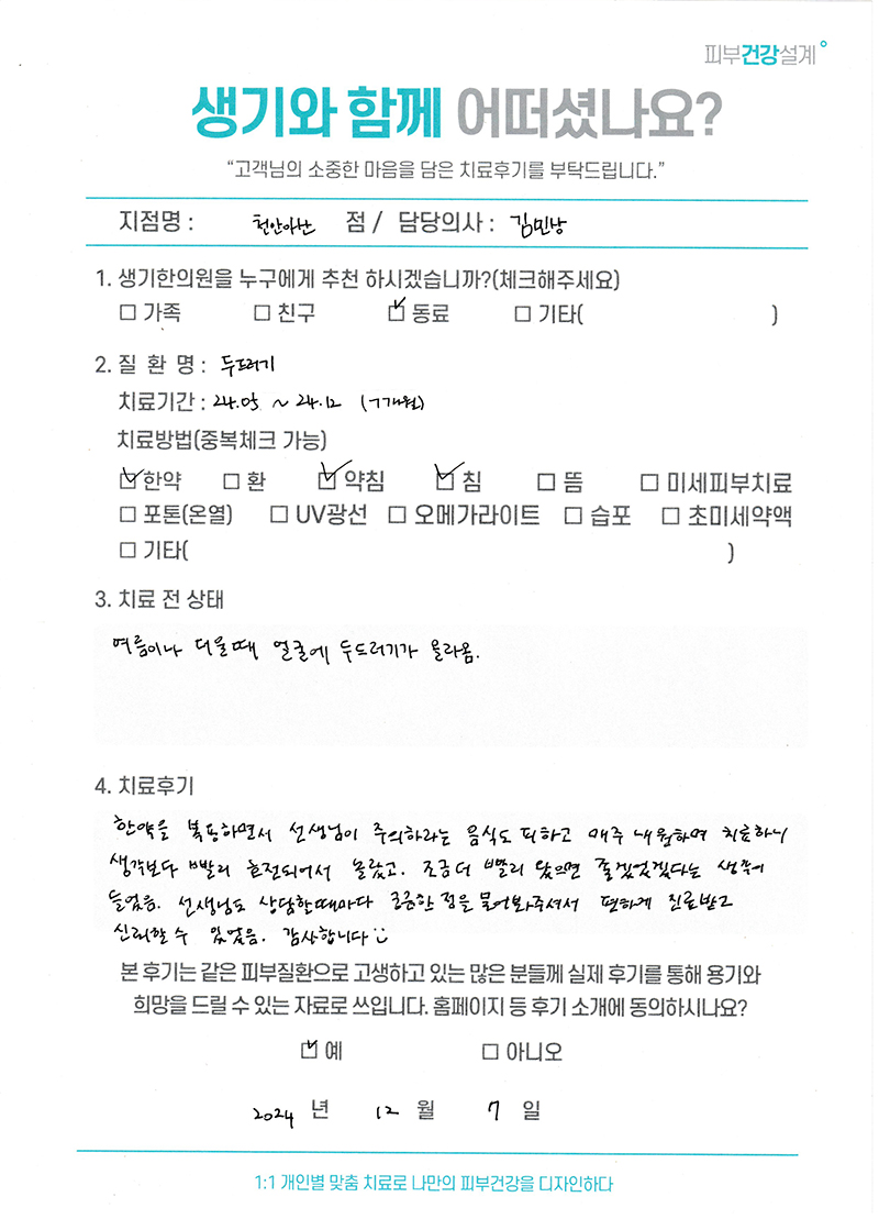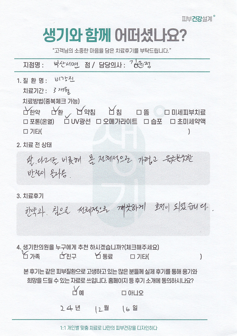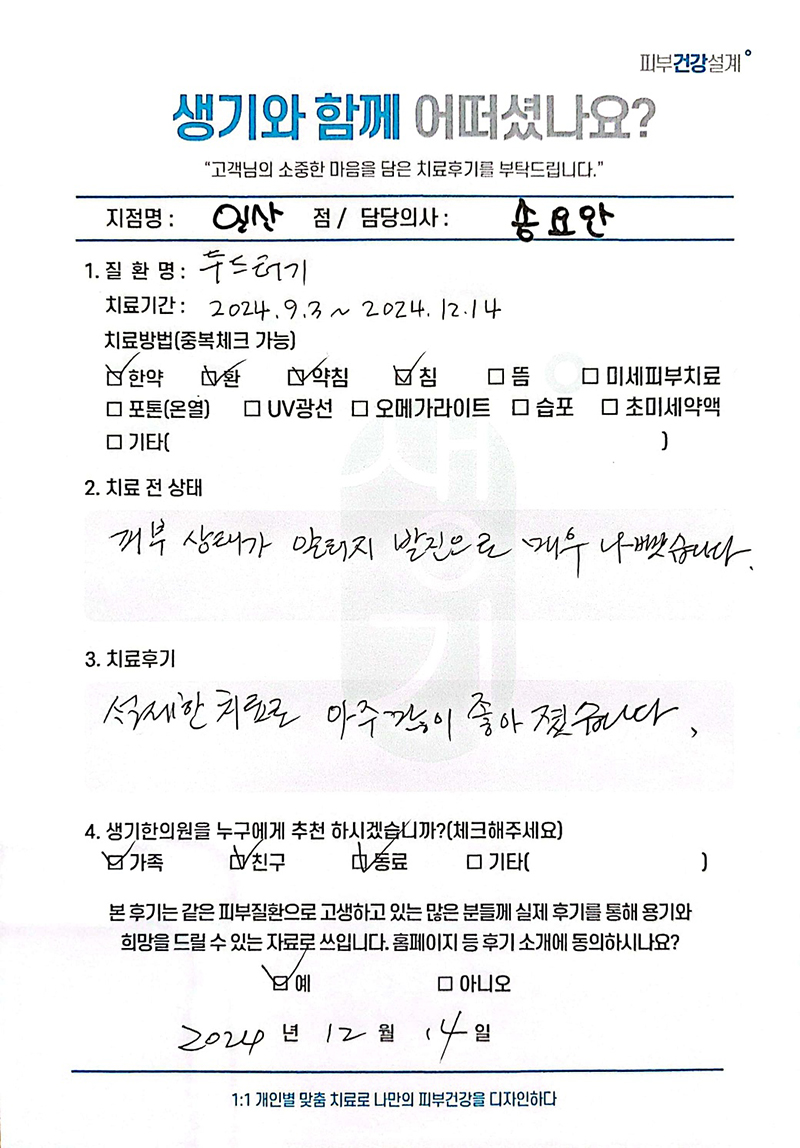 생기한의원과 함께하신 생생한 자필 및 영상 후기를 소개합니다.
