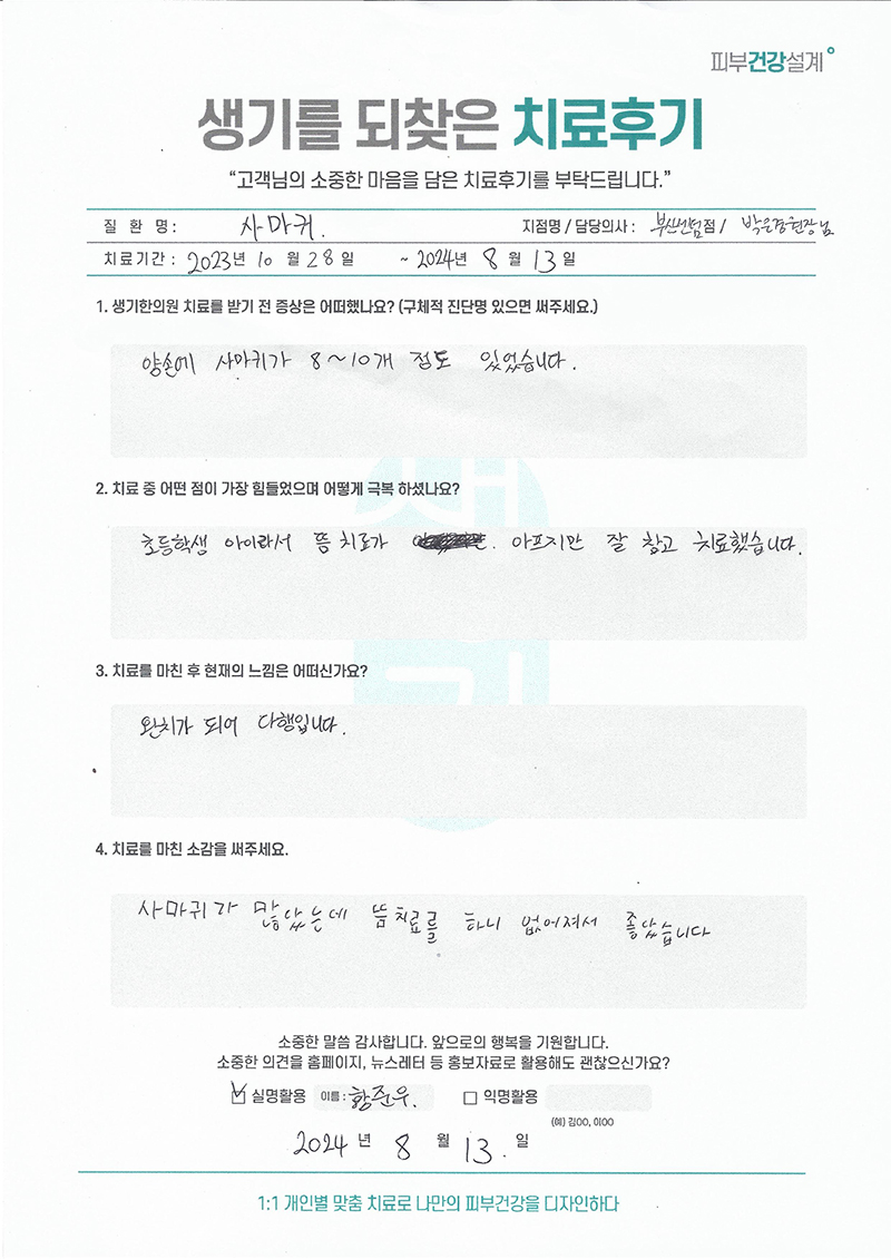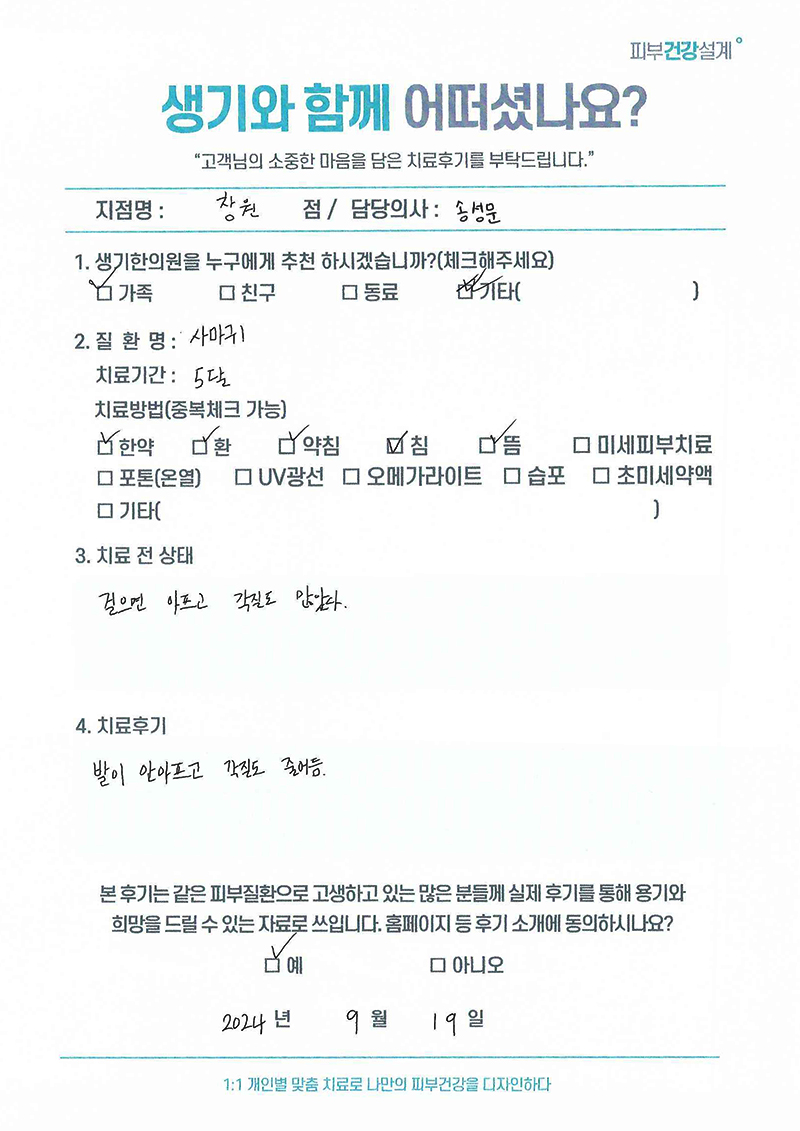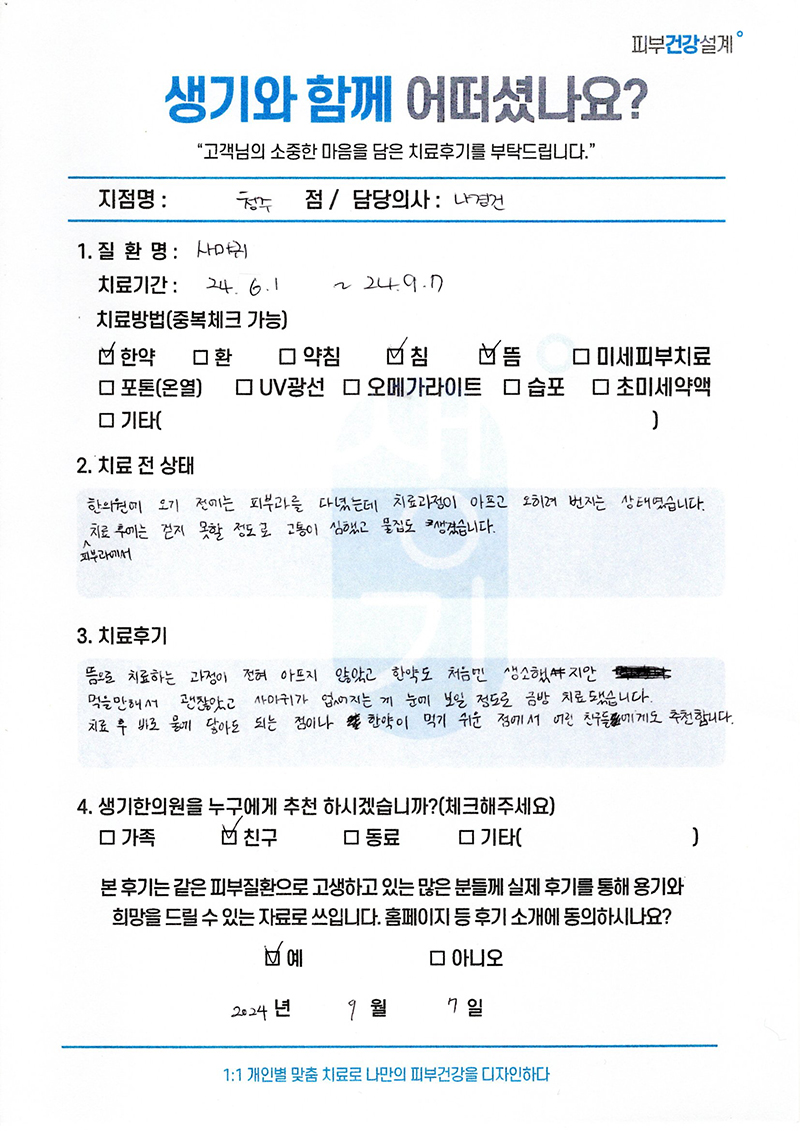 생기한의원과 함께하신 생생한 자필 및 영상 후기를 소개합니다.