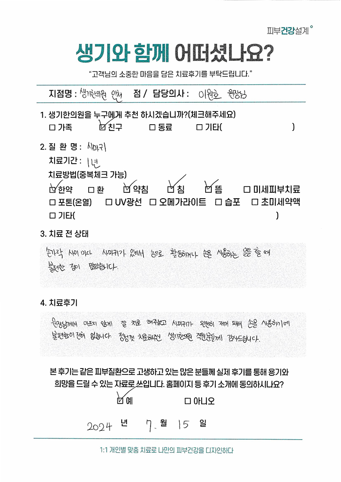 생기한의원과 함께하신 생생한 자필 및 영상 후기를 소개합니다.