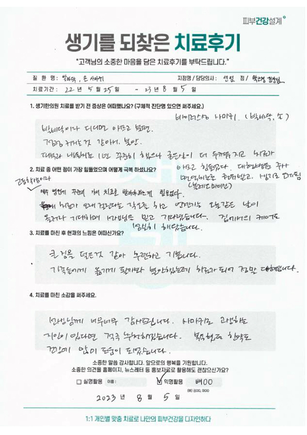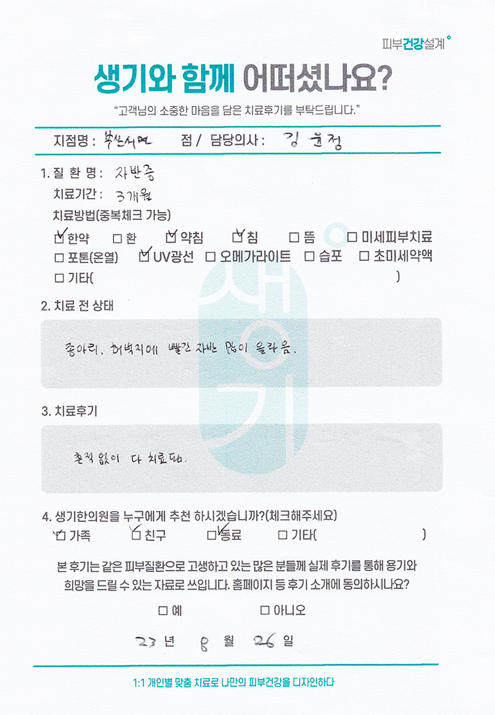 생기한의원과 함께하신 생생한 자필 및 영상 후기를 소개합니다.