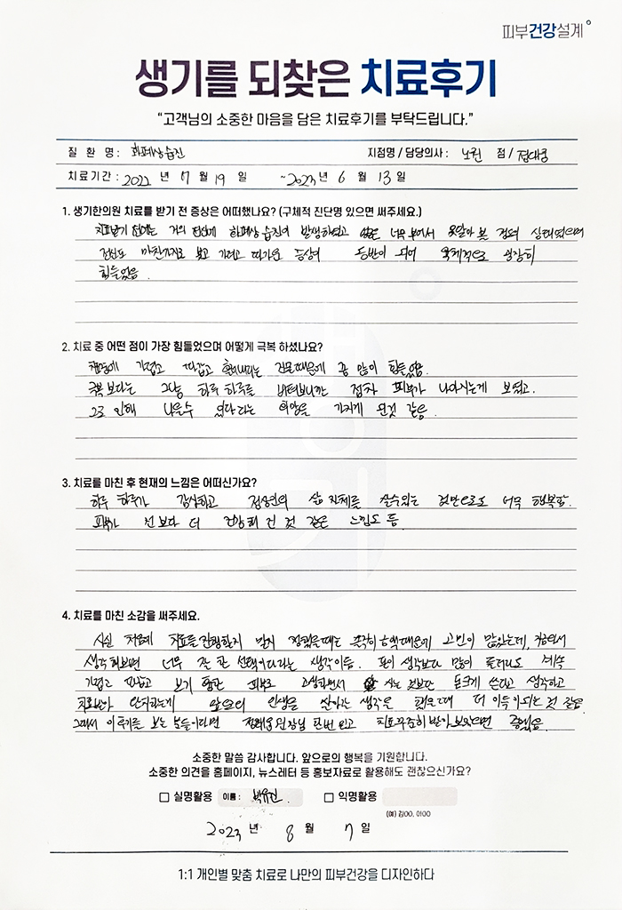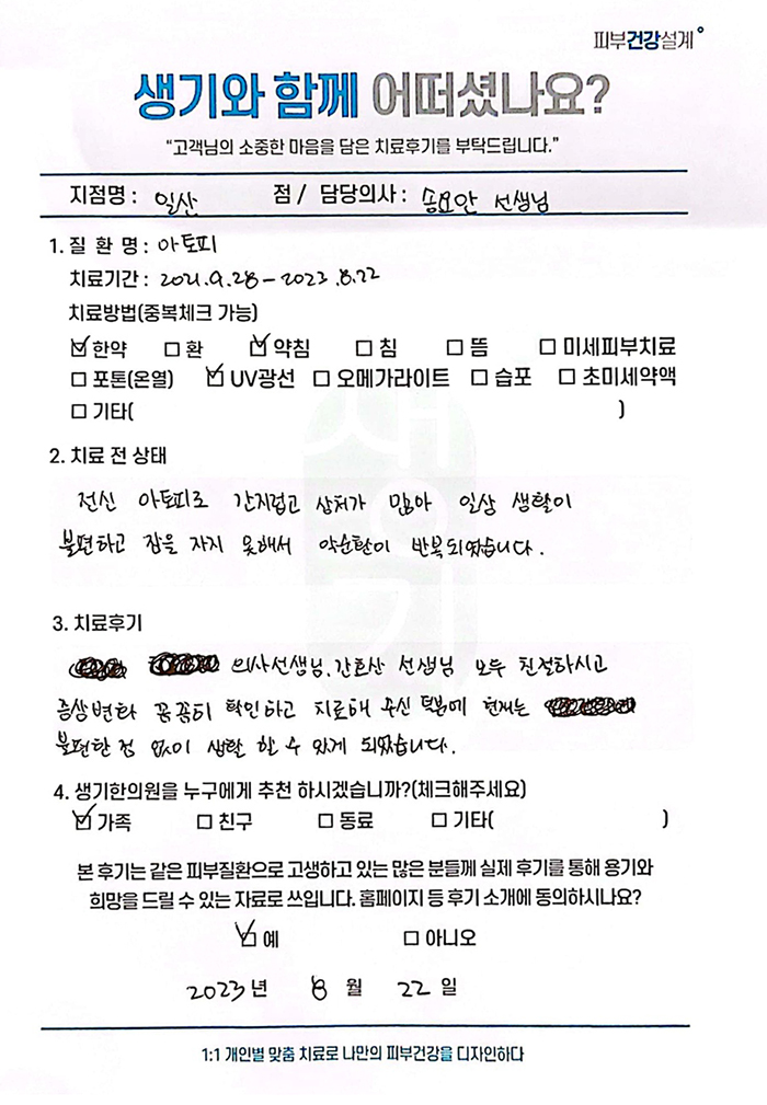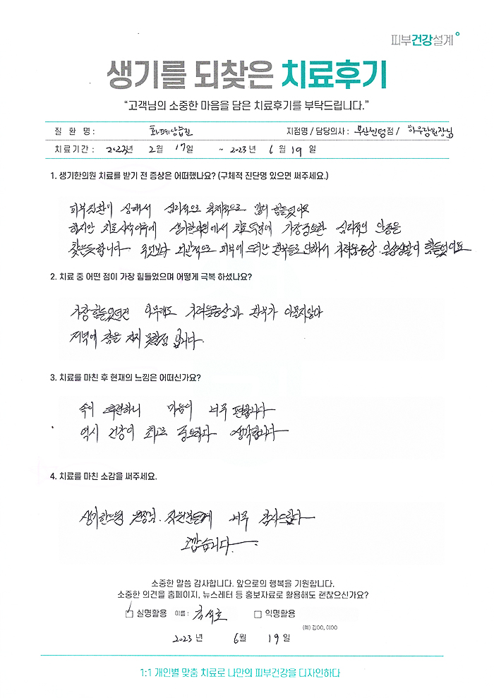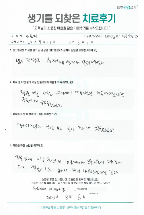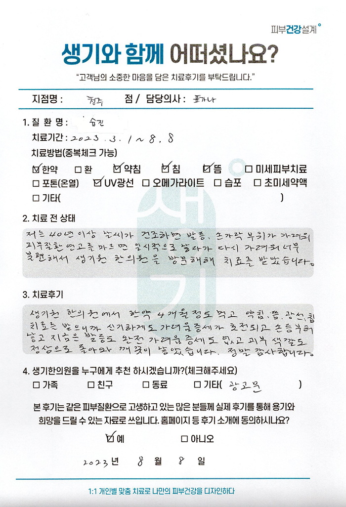 생기한의원과 함께하신 생생한 자필 및 영상 후기를 소개합니다.
