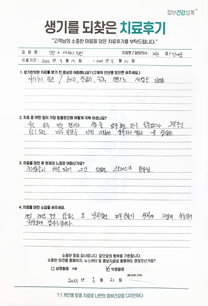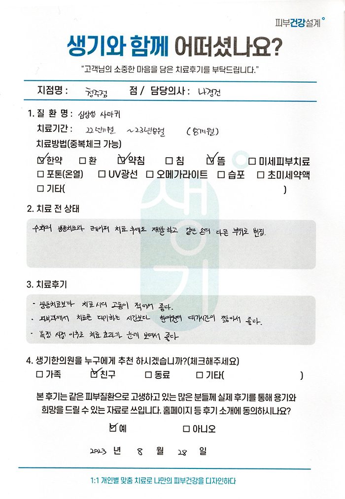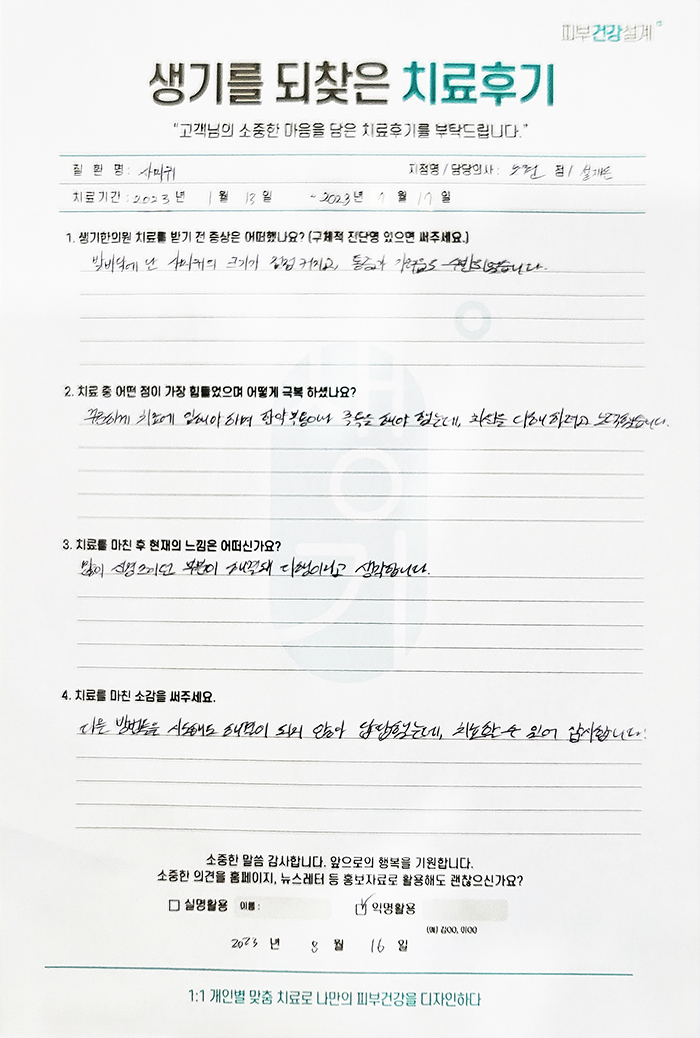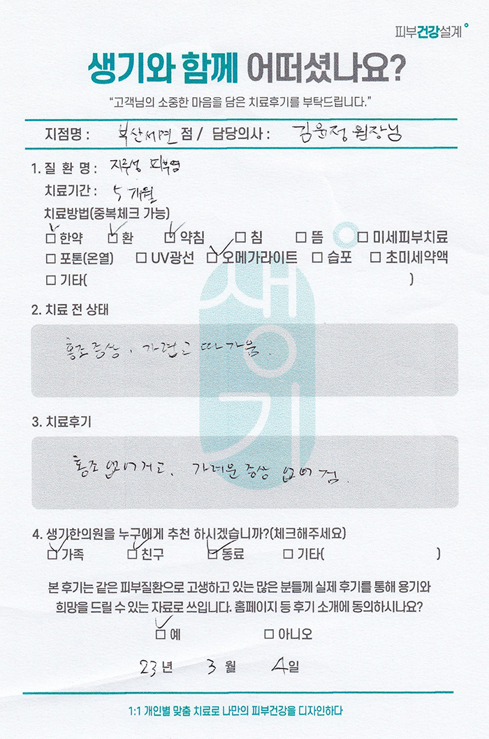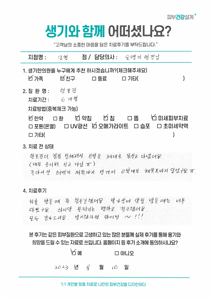 생기한의원과 함께하신 생생한 자필 및 영상 후기를 소개합니다.