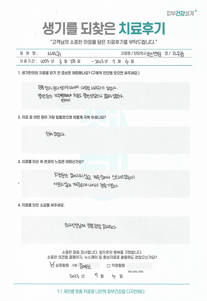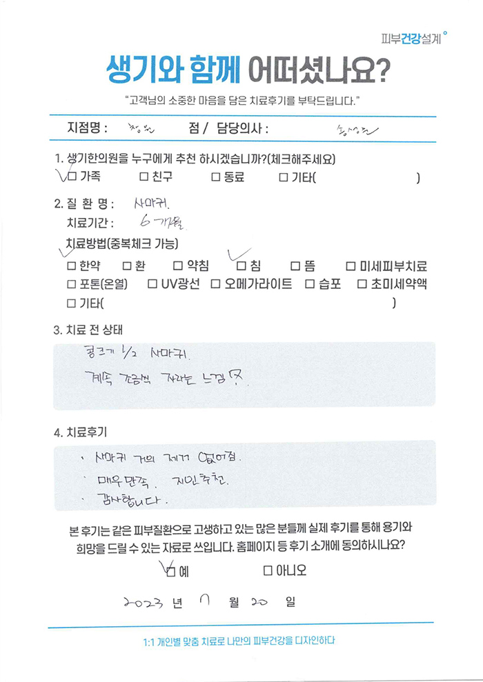 생기한의원과 함께하신 생생한 자필 및 영상 후기를 소개합니다.