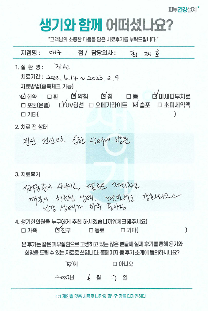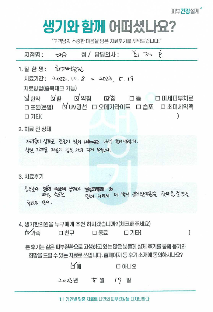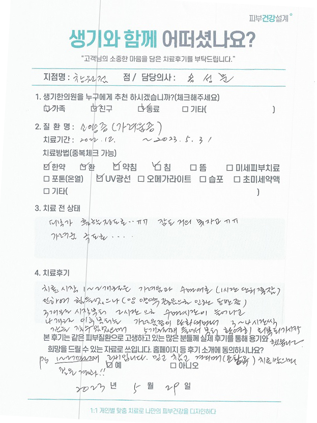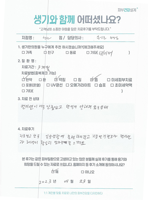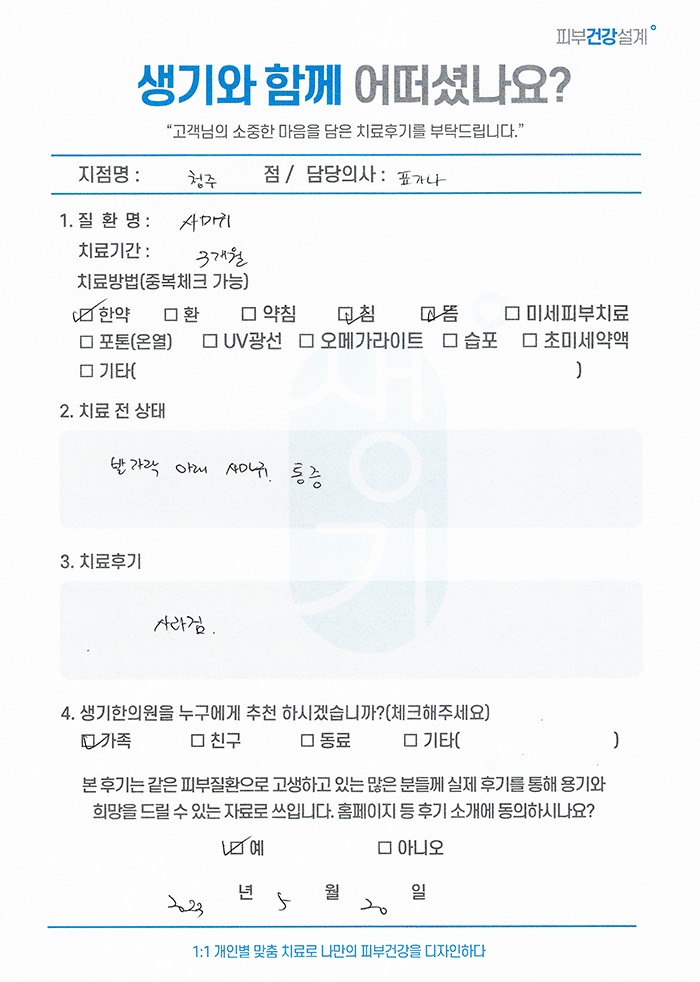 생기한의원과 함께하신 생생한 자필 및 영상 후기를 소개합니다.