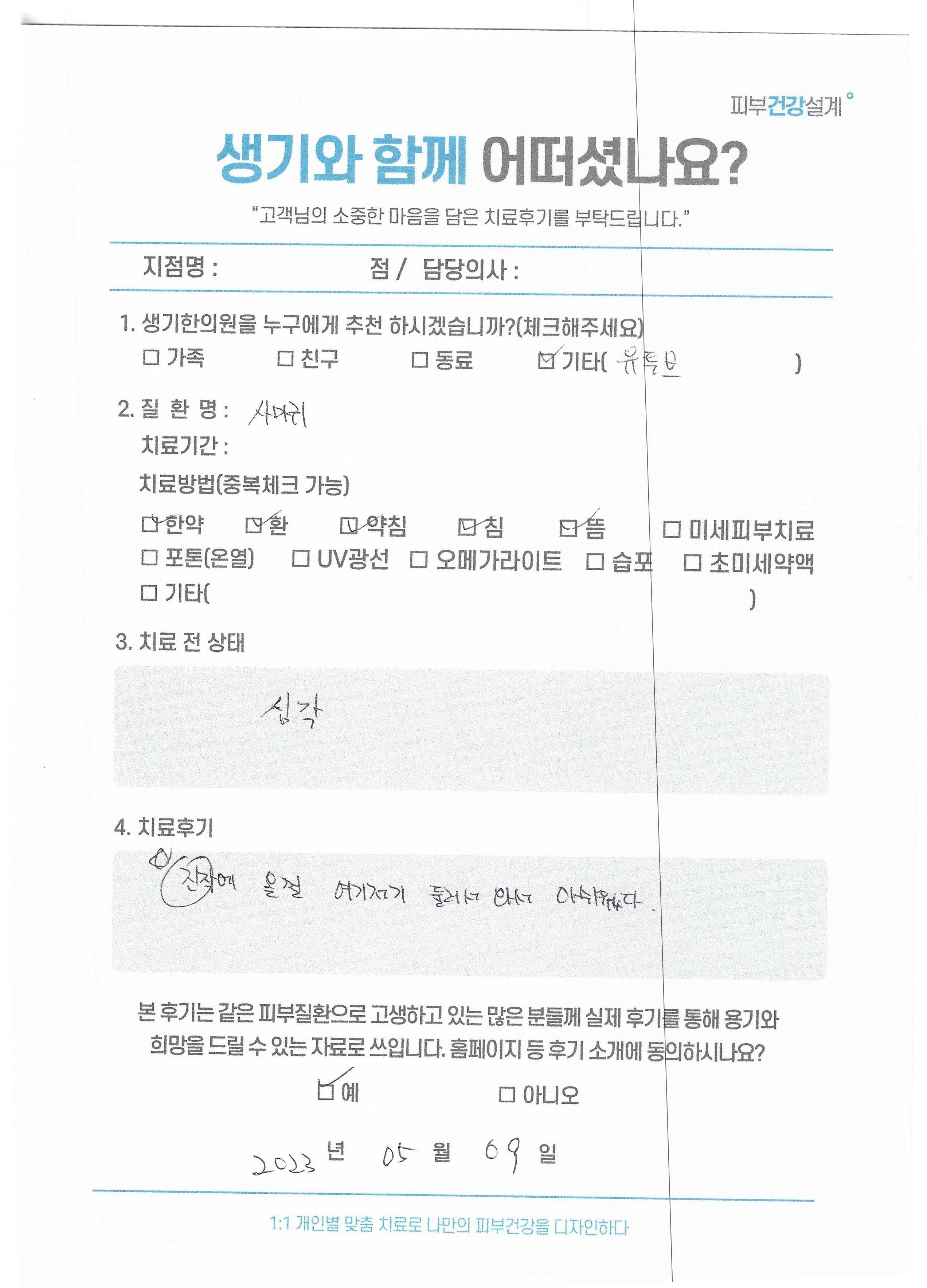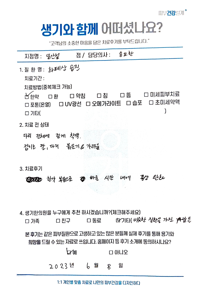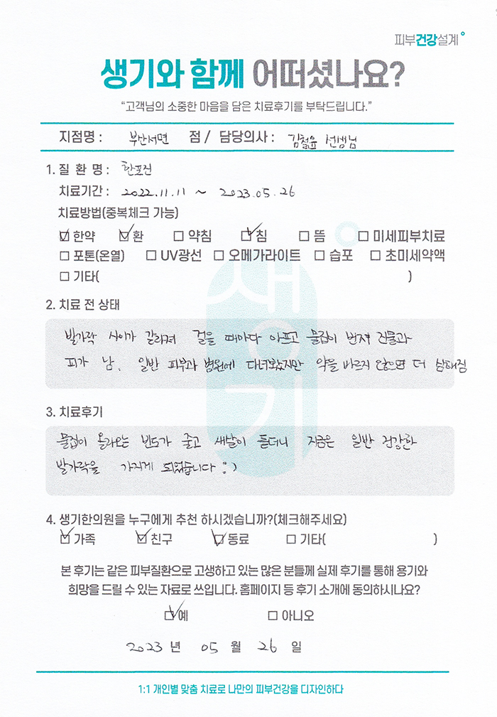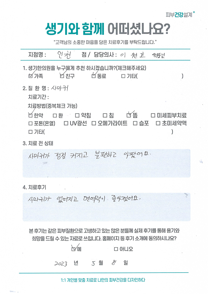 생기한의원과 함께하신 생생한 자필 및 영상 후기를 소개합니다.