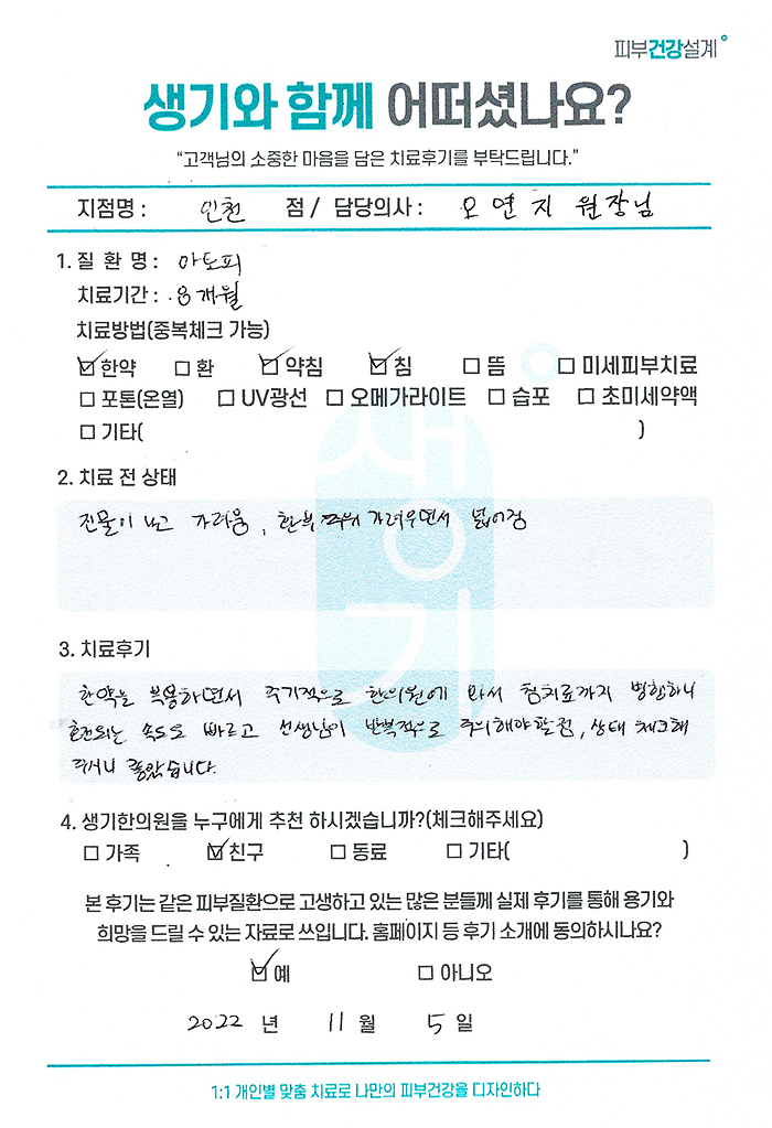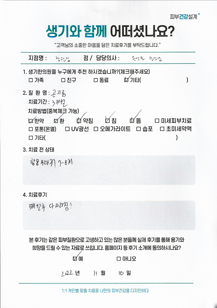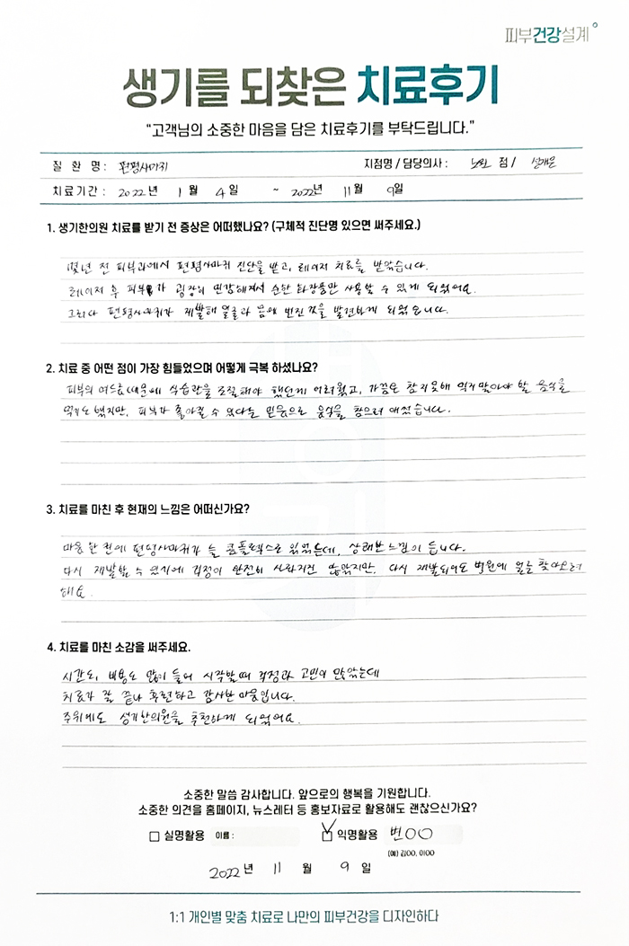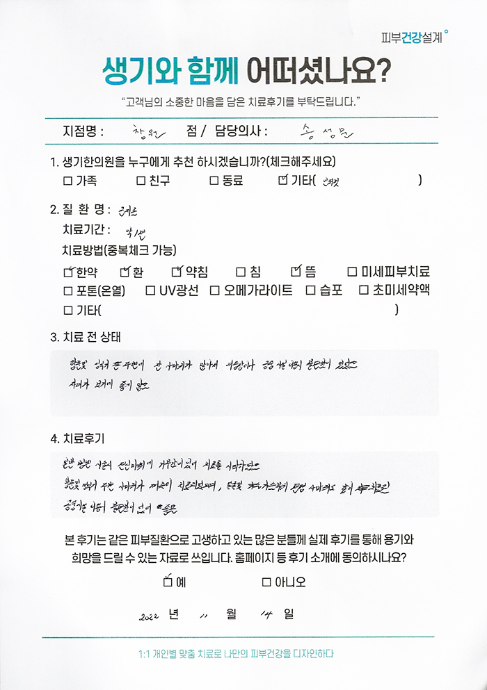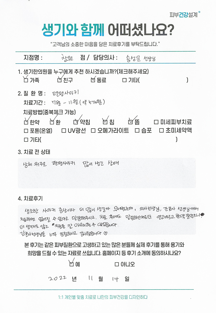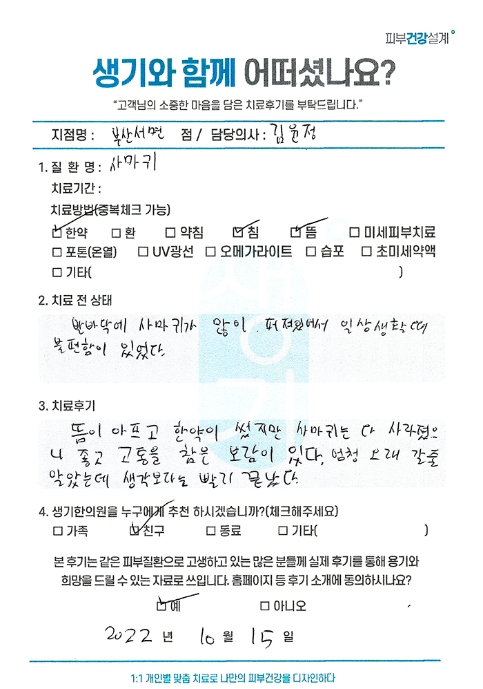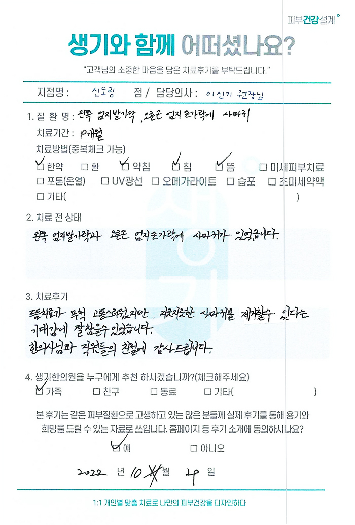 생기한의원과 함께하신 생생한 자필 및 영상 후기를 소개합니다.