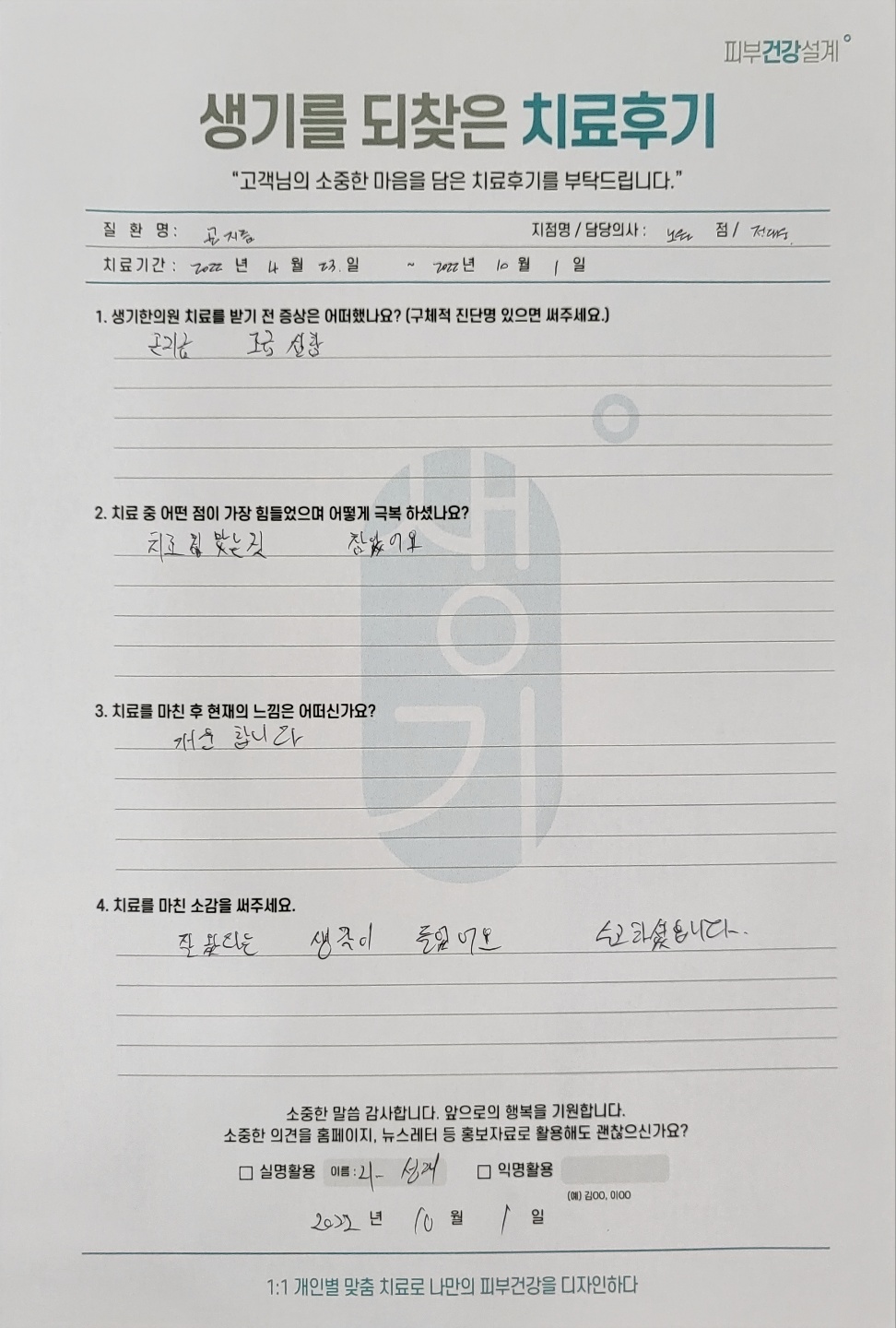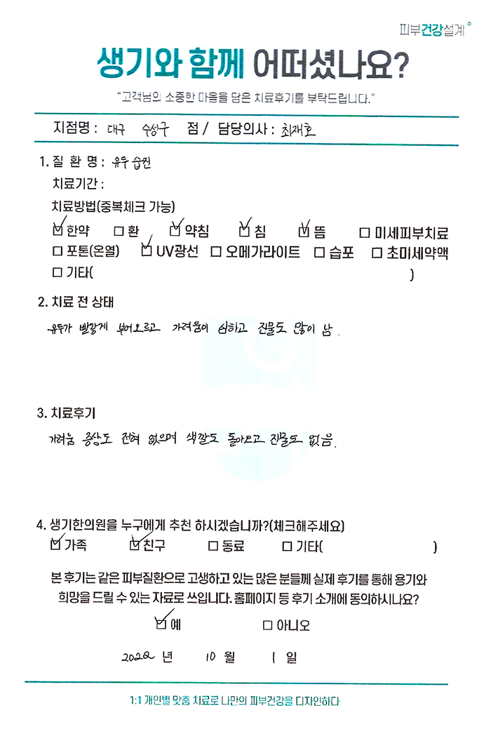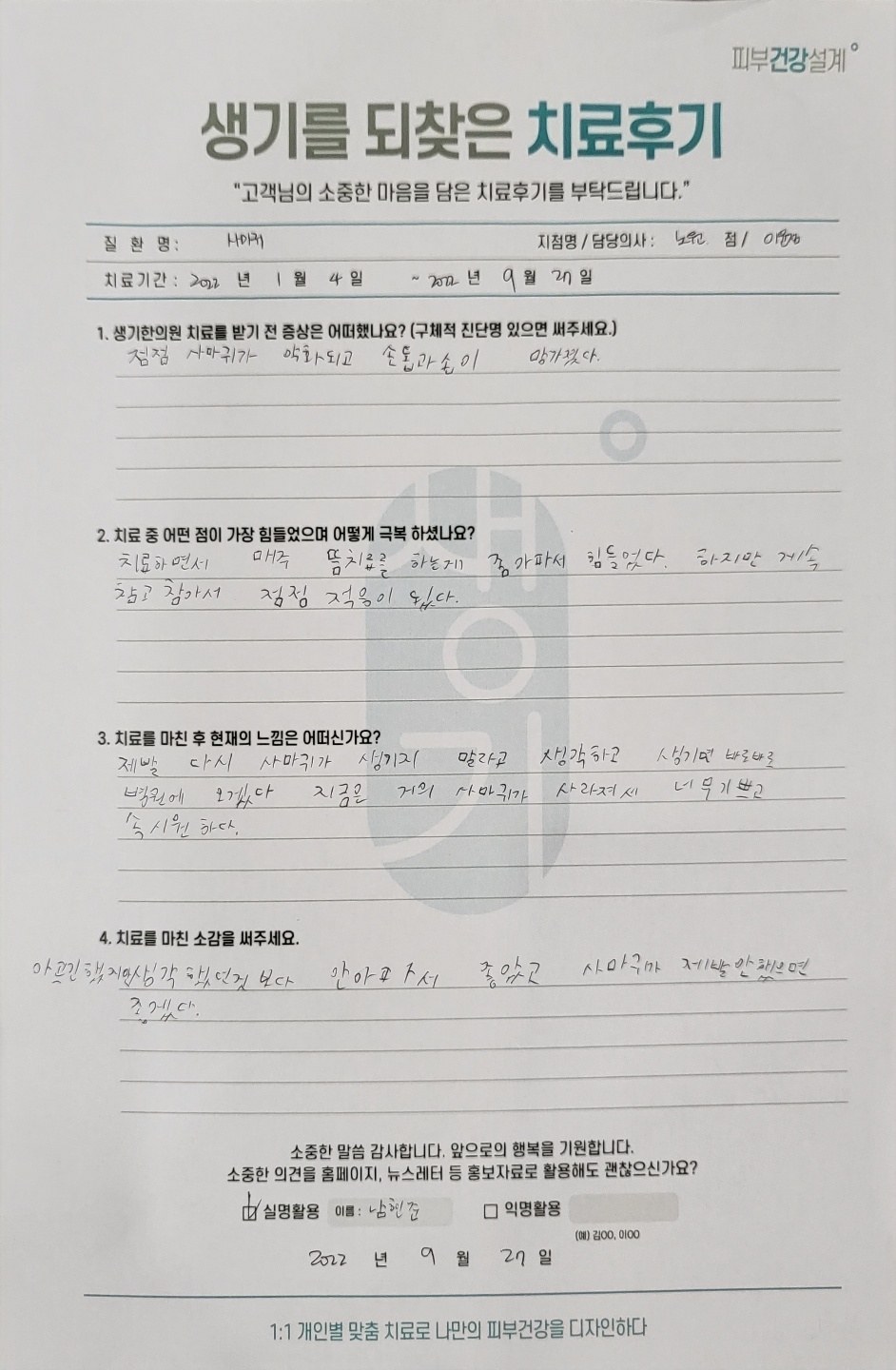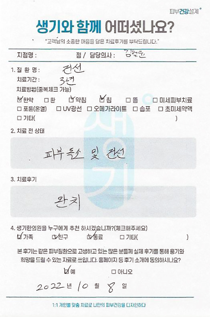 생기한의원과 함께하신 생생한 자필 및 영상 후기를 소개합니다.