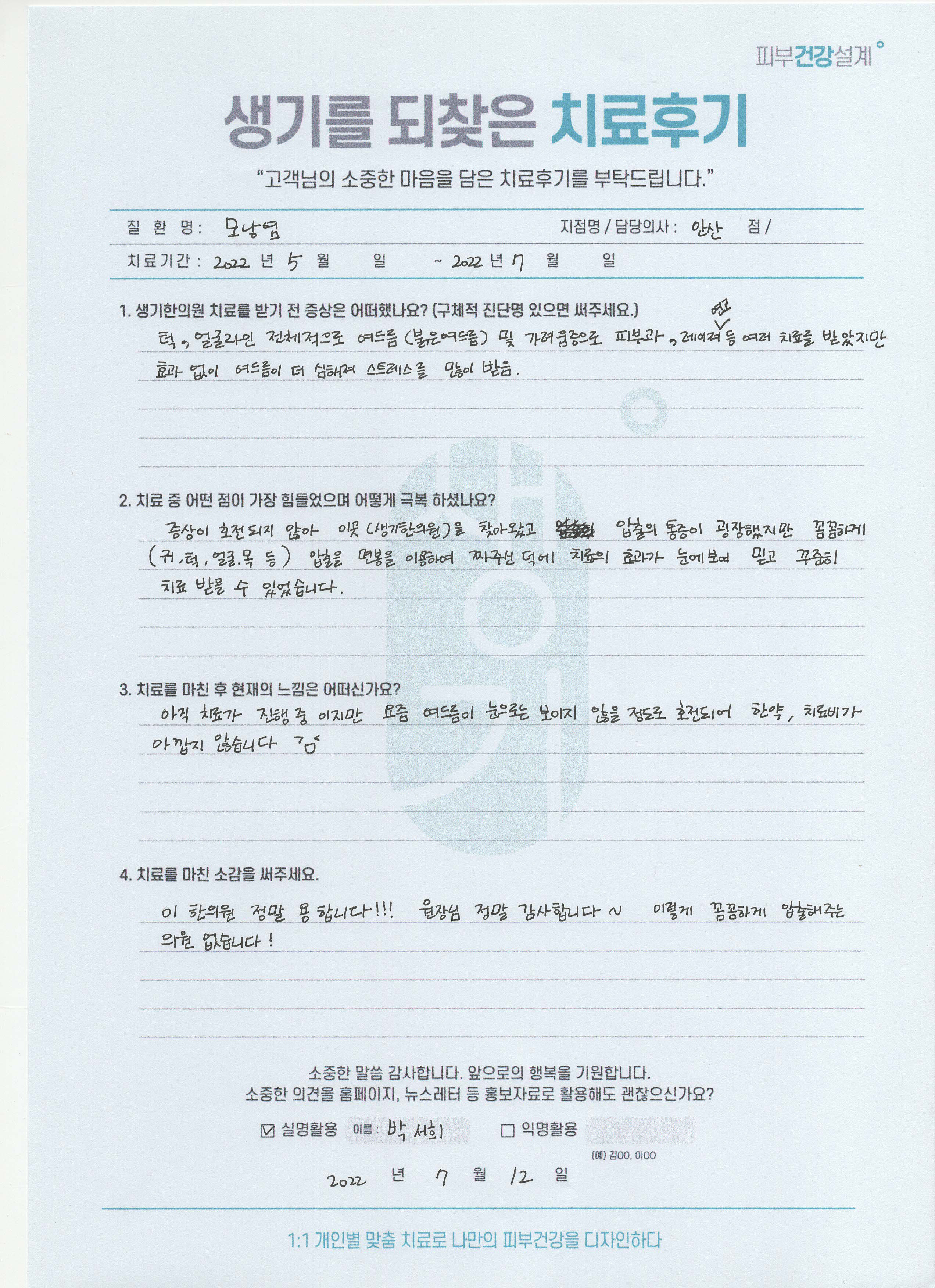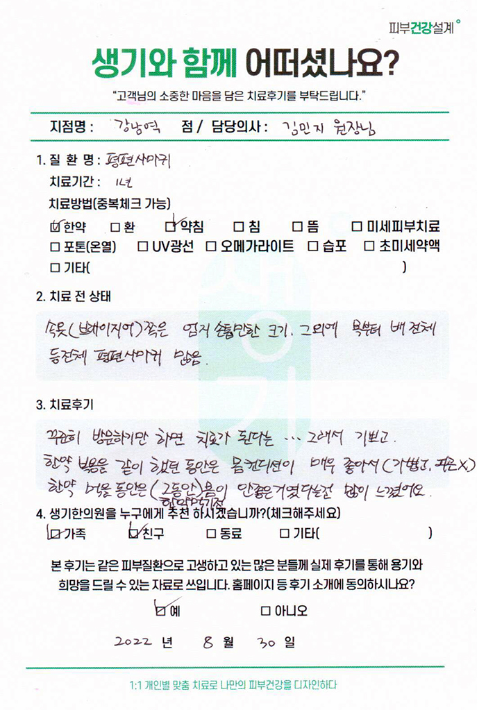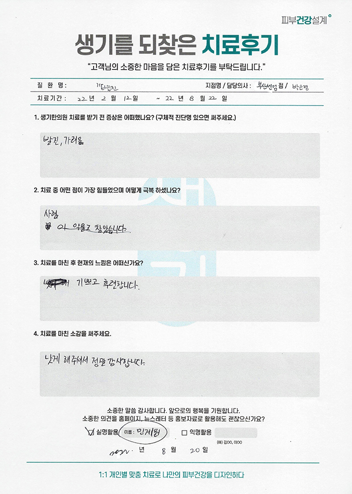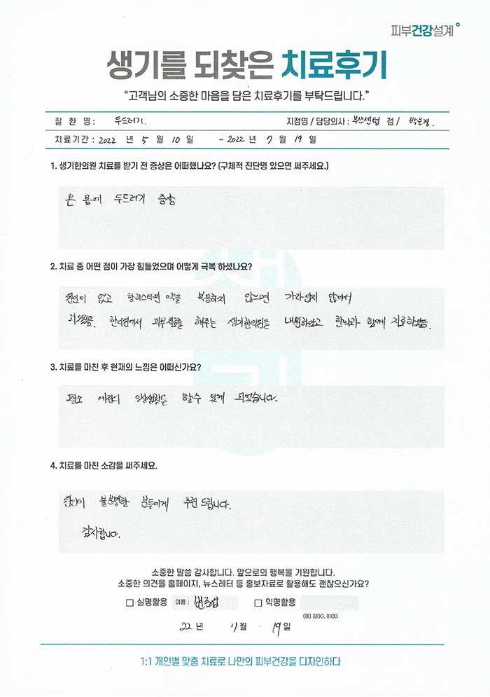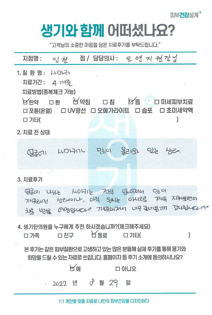 생기한의원과 함께하신 생생한 자필 및 영상 후기를 소개합니다.