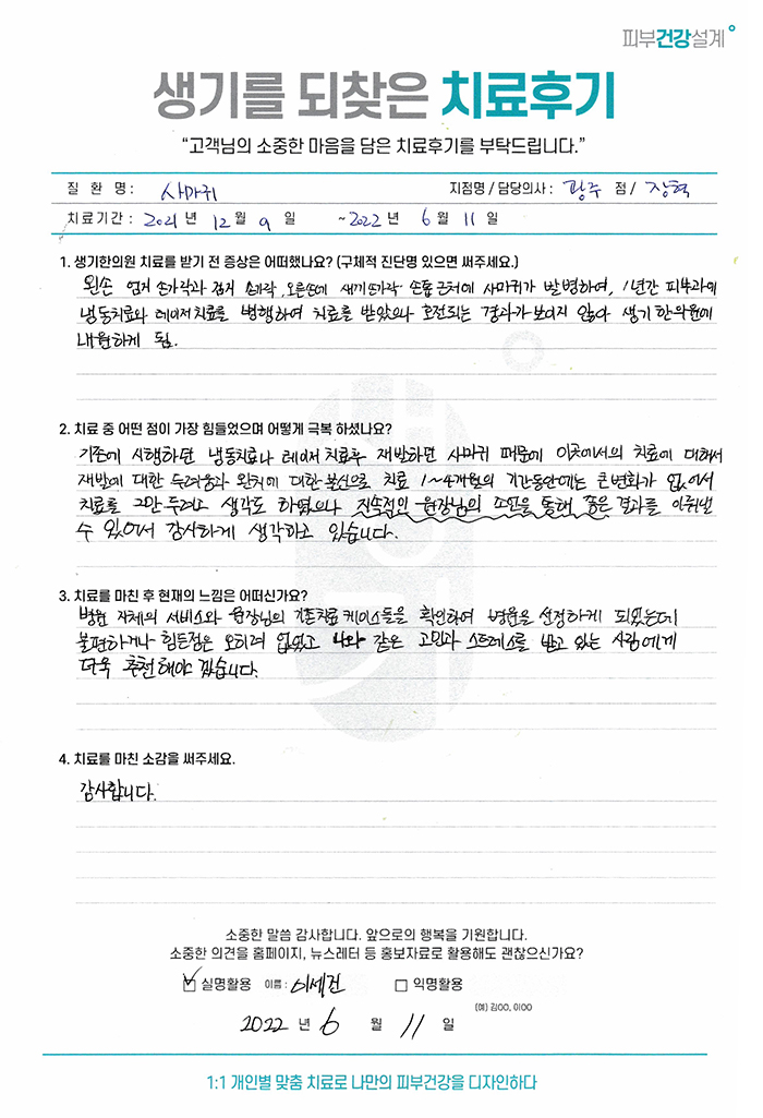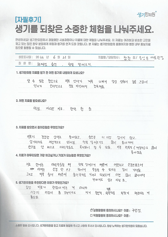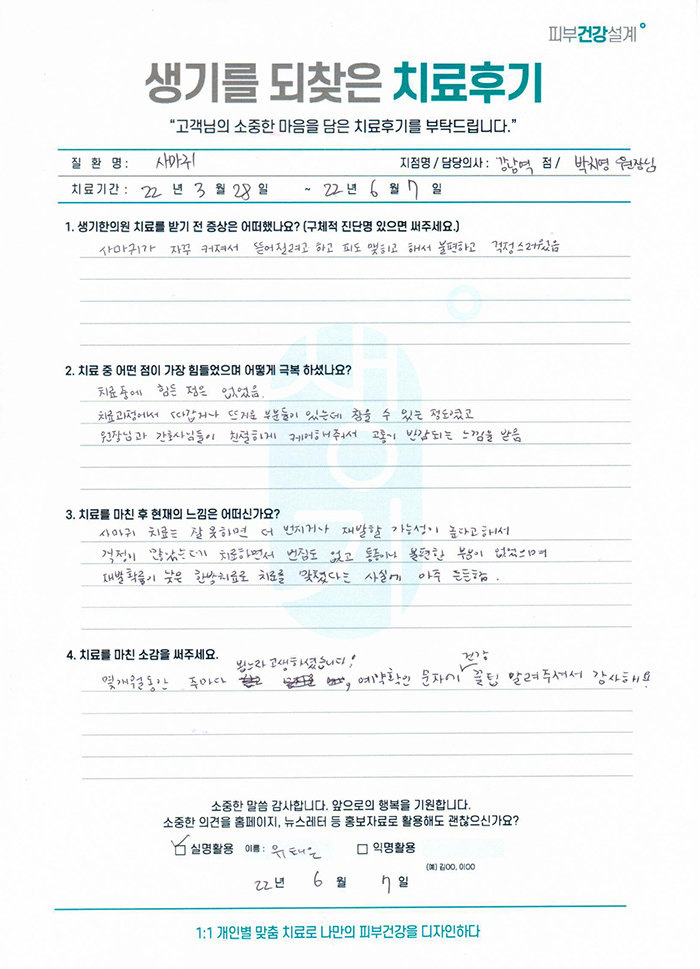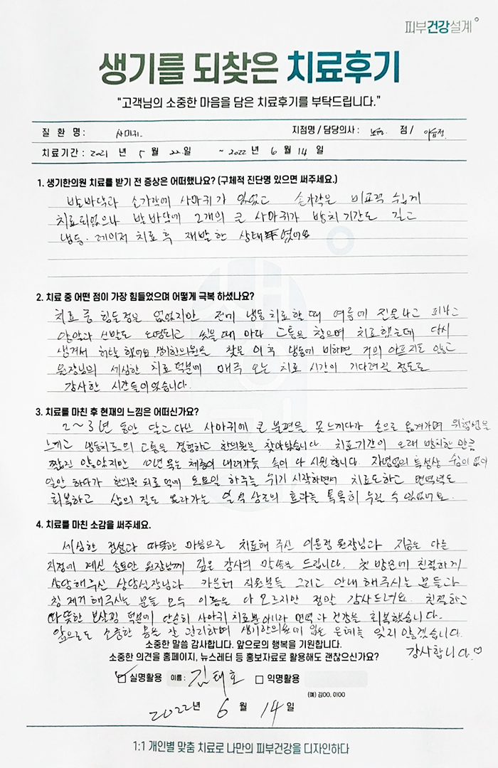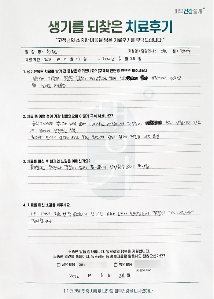 생기한의원과 함께하신 생생한 자필 및 영상 후기를 소개합니다.