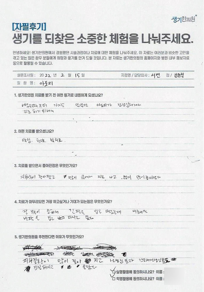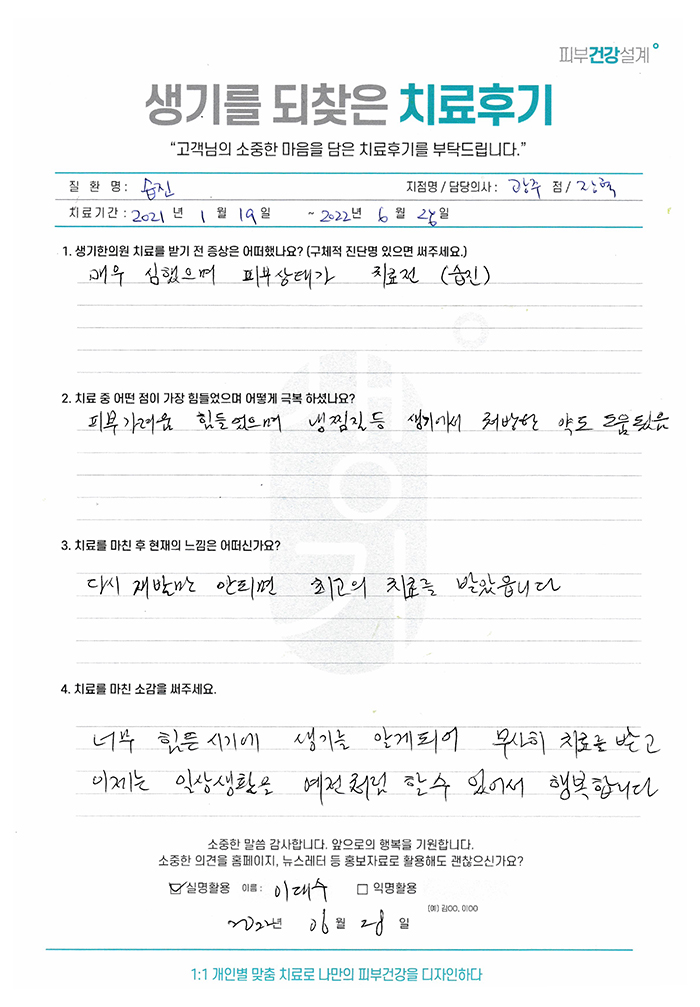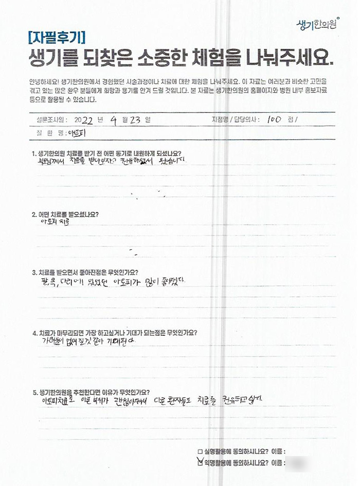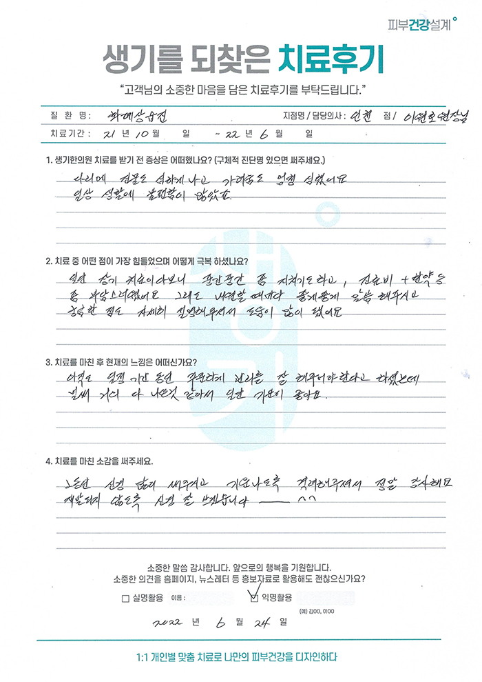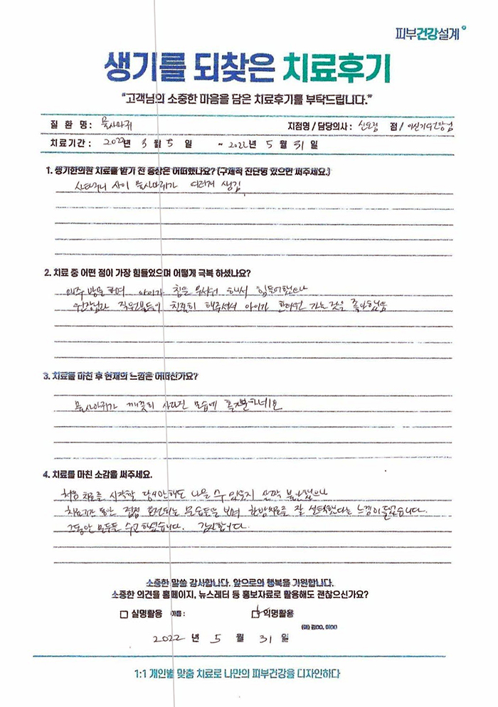 생기한의원과 함께하신 생생한 자필 및 영상 후기를 소개합니다.