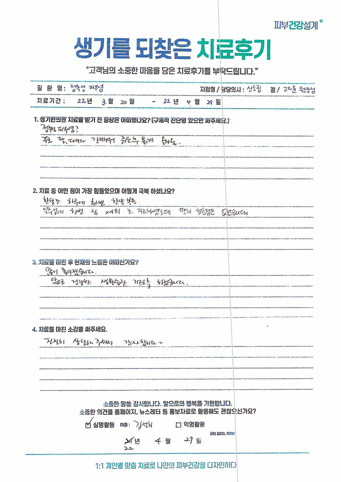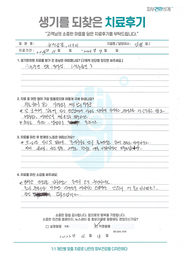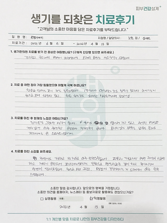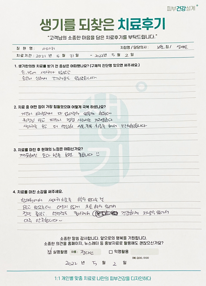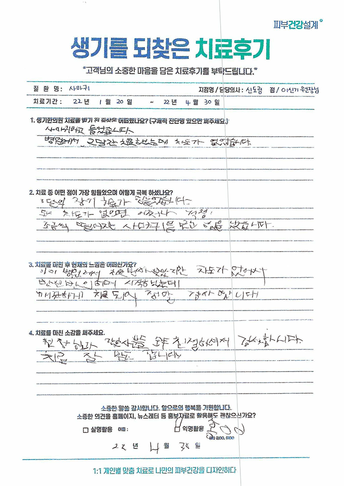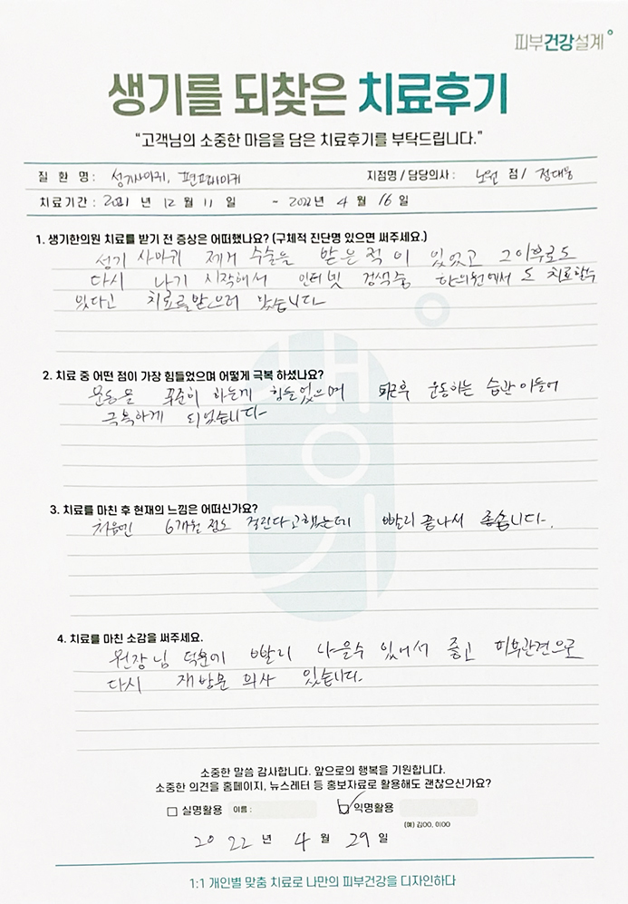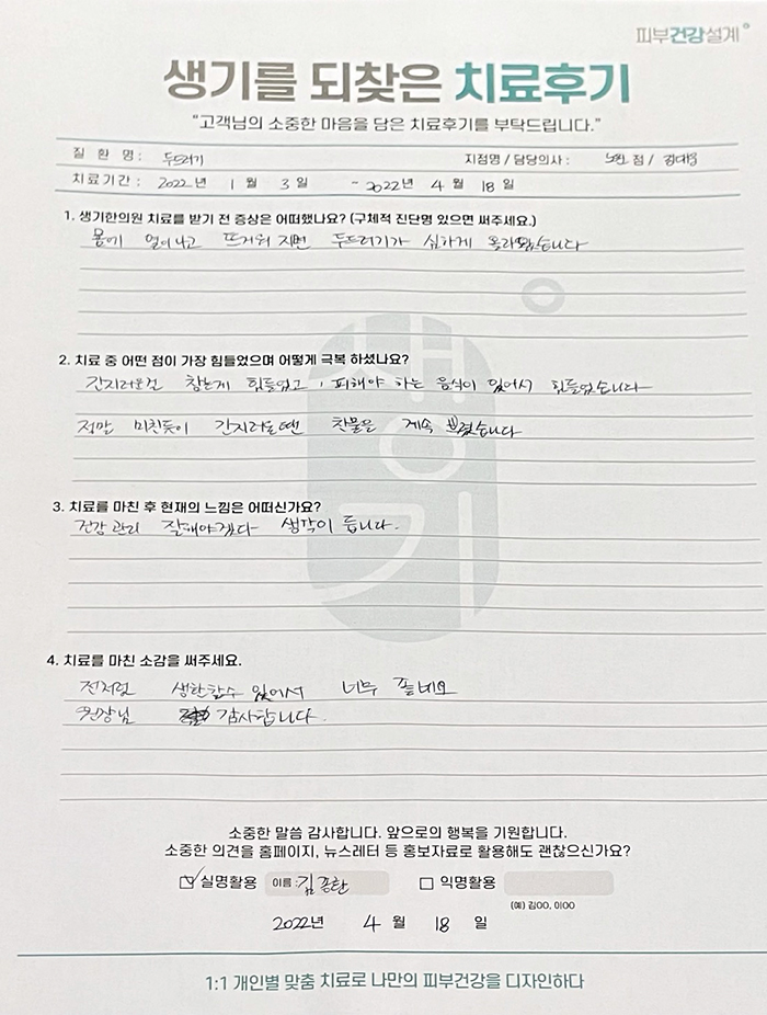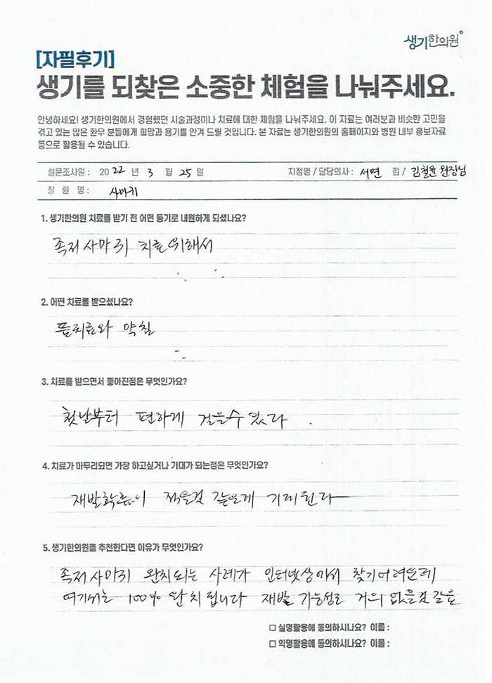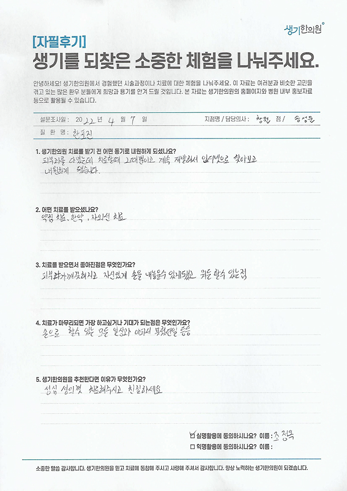 생기한의원과 함께하신 생생한 자필 및 영상 후기를 소개합니다.