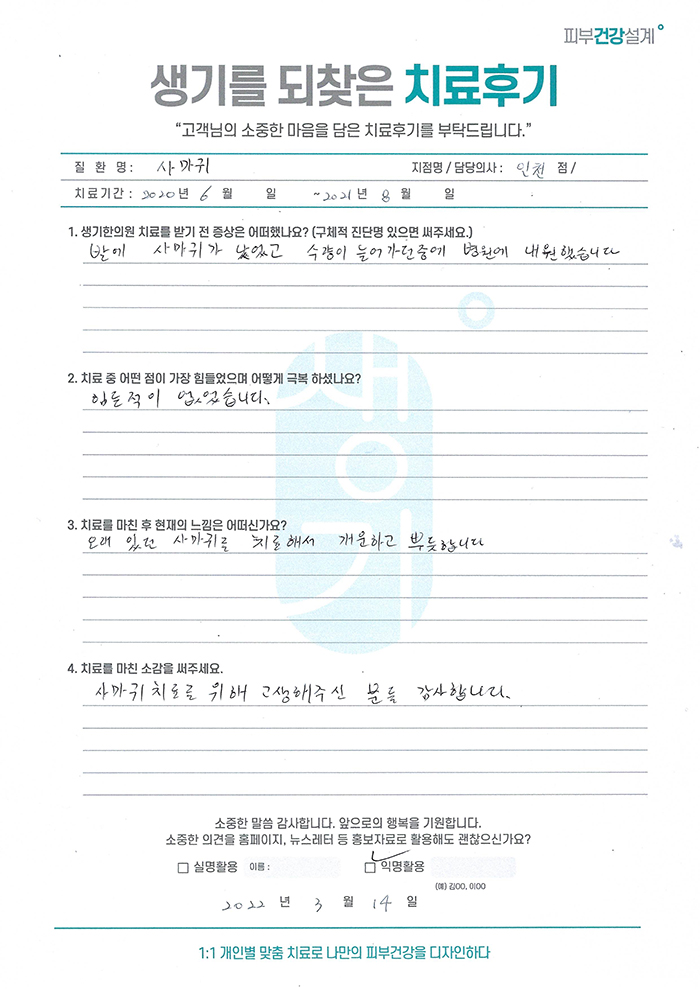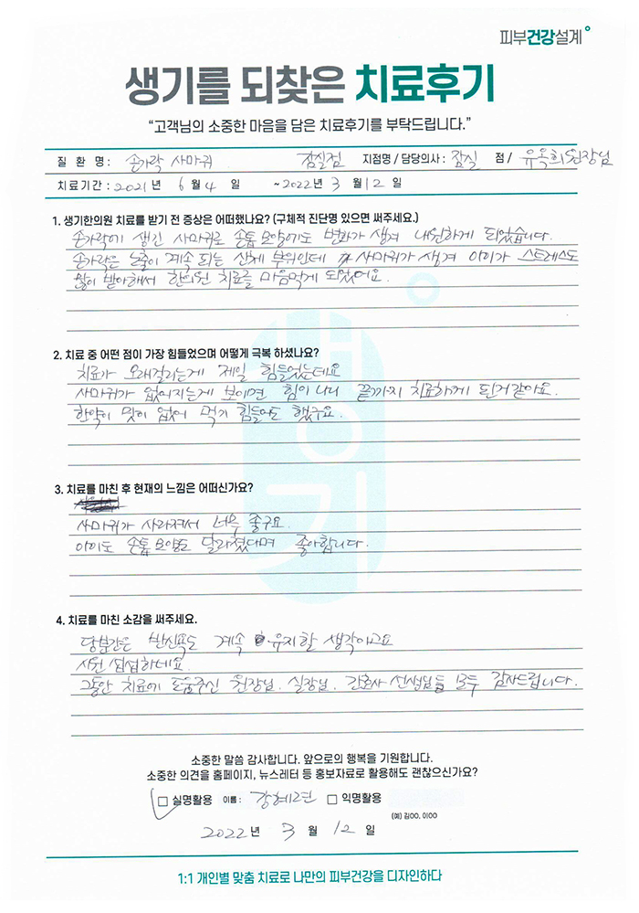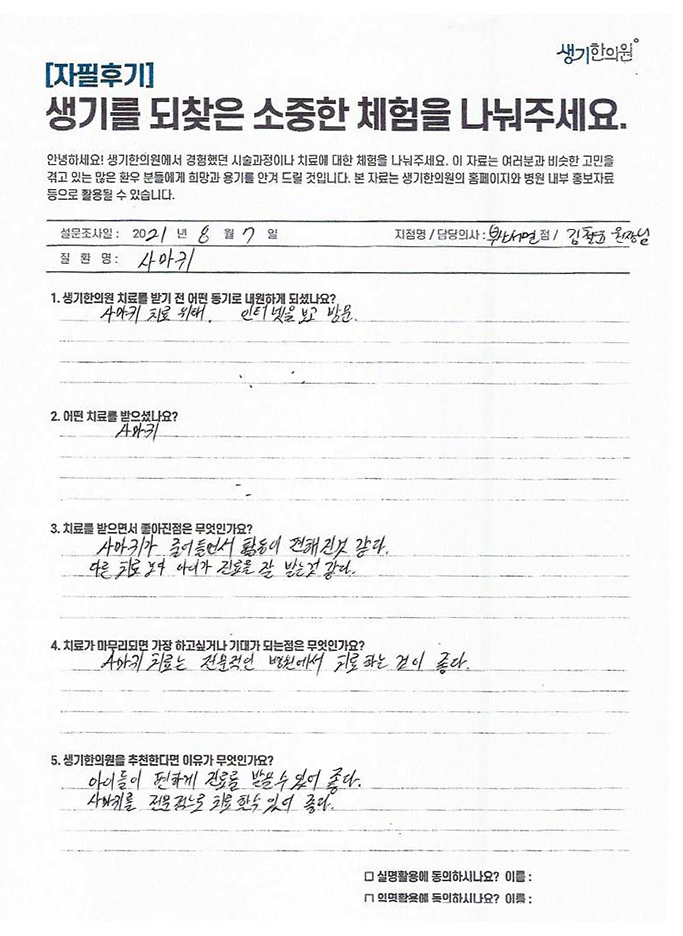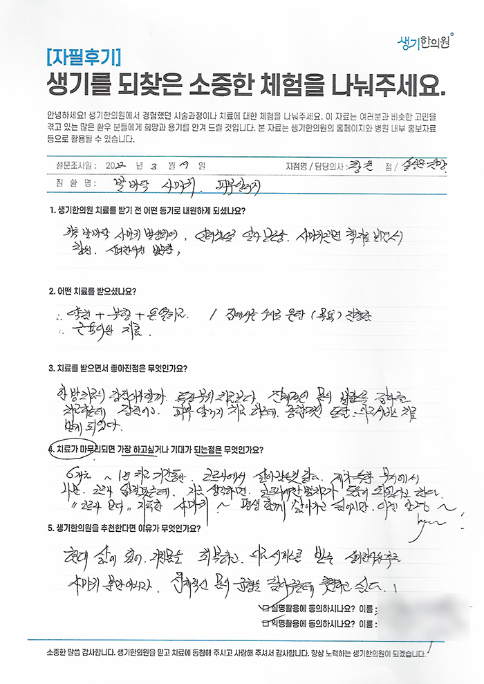 생기한의원과 함께하신 생생한 자필 및 영상 후기를 소개합니다.