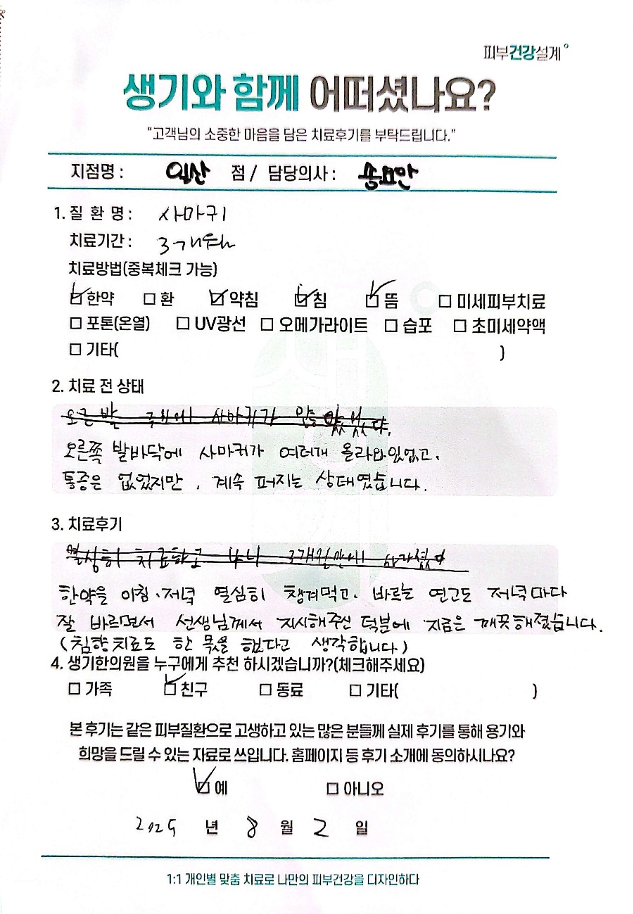 생기한의원과 함께하신 생생한 자필 및 영상 후기를 소개합니다.