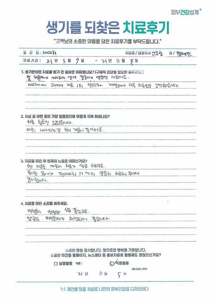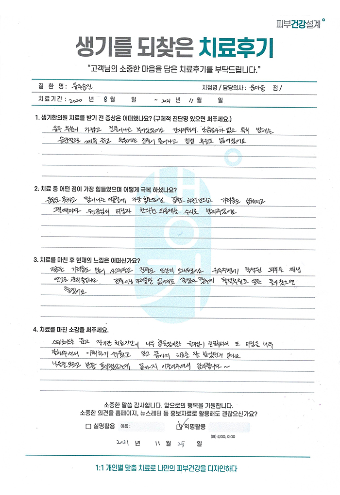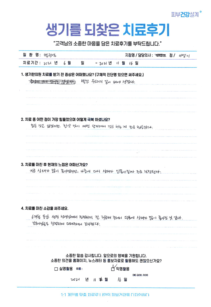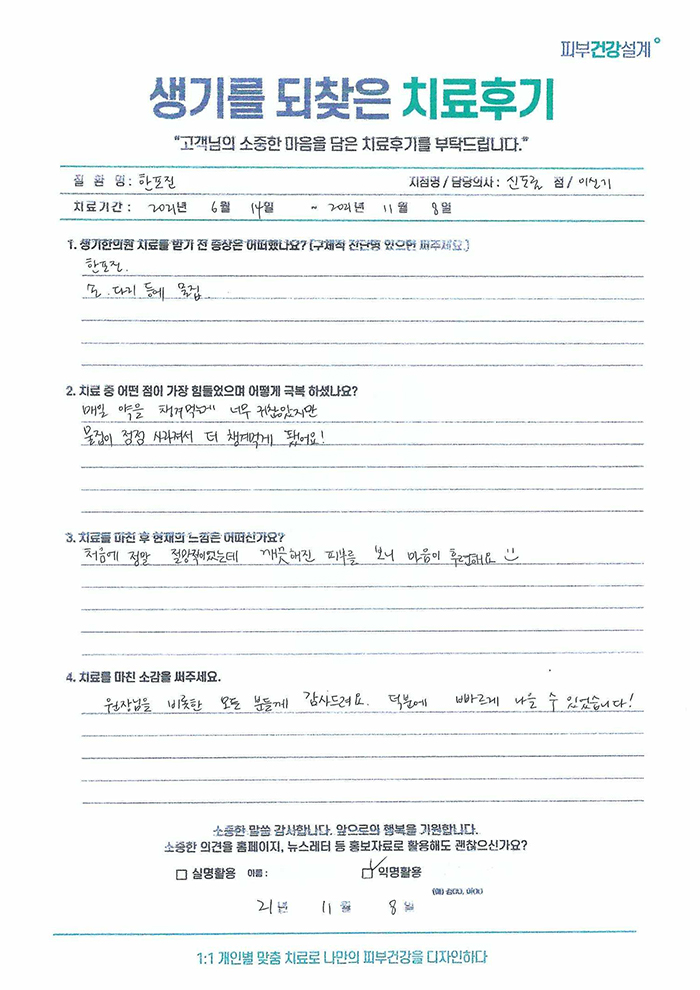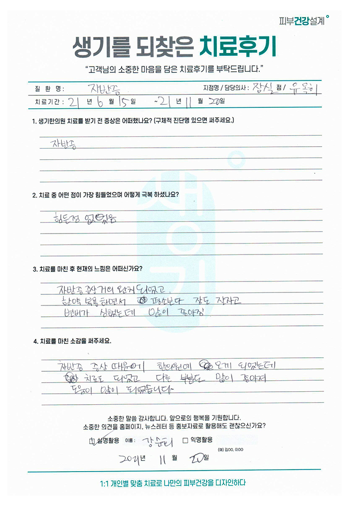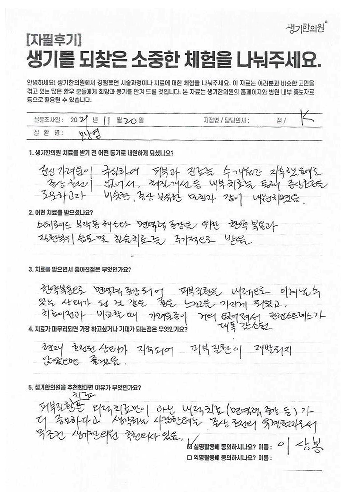 생기한의원과 함께하신 생생한 자필 및 영상 후기를 소개합니다.