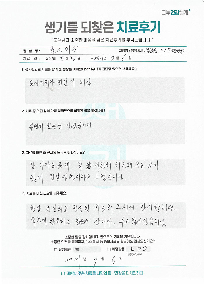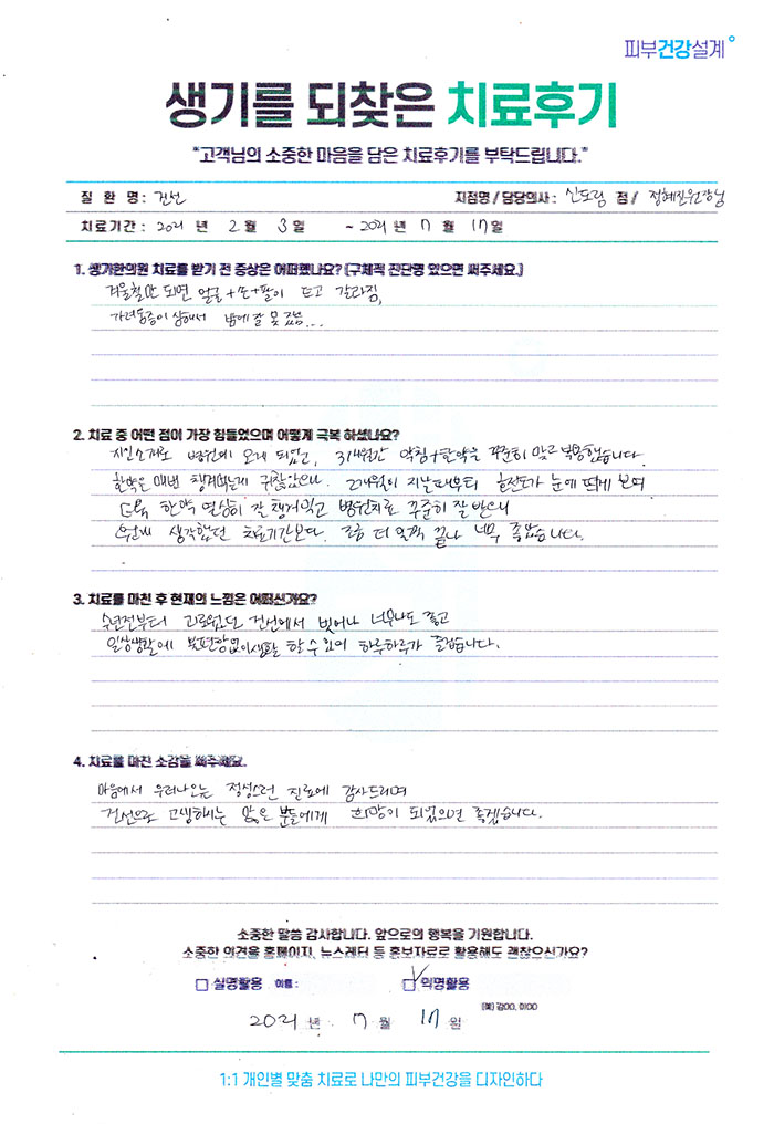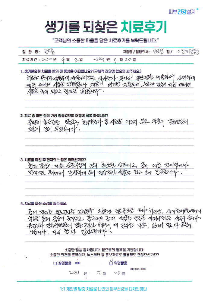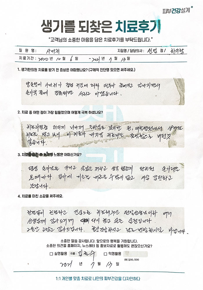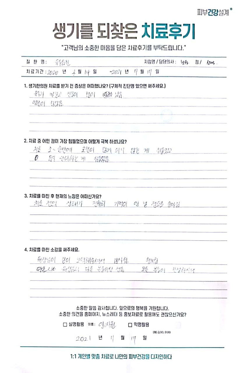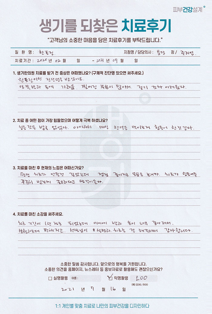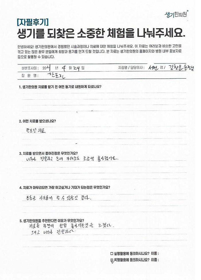 생기한의원과 함께하신 생생한 자필 및 영상 후기를 소개합니다.