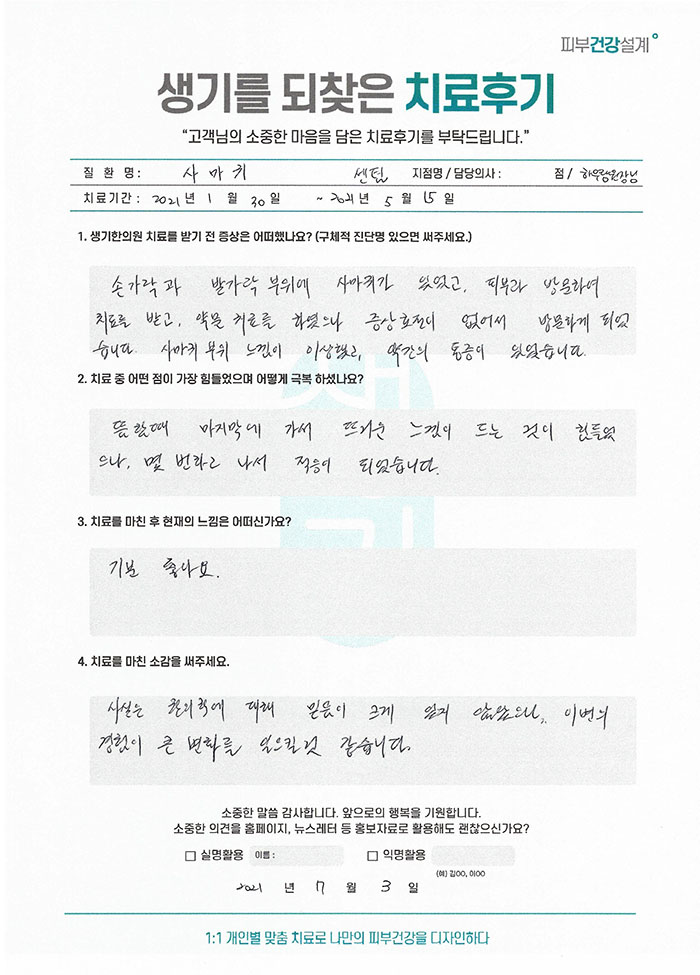 생기한의원과 함께하신 생생한 자필 및 영상 후기를 소개합니다.