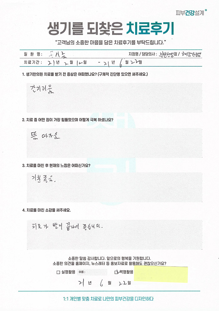 생기한의원과 함께하신 생생한 자필 및 영상 후기를 소개합니다.