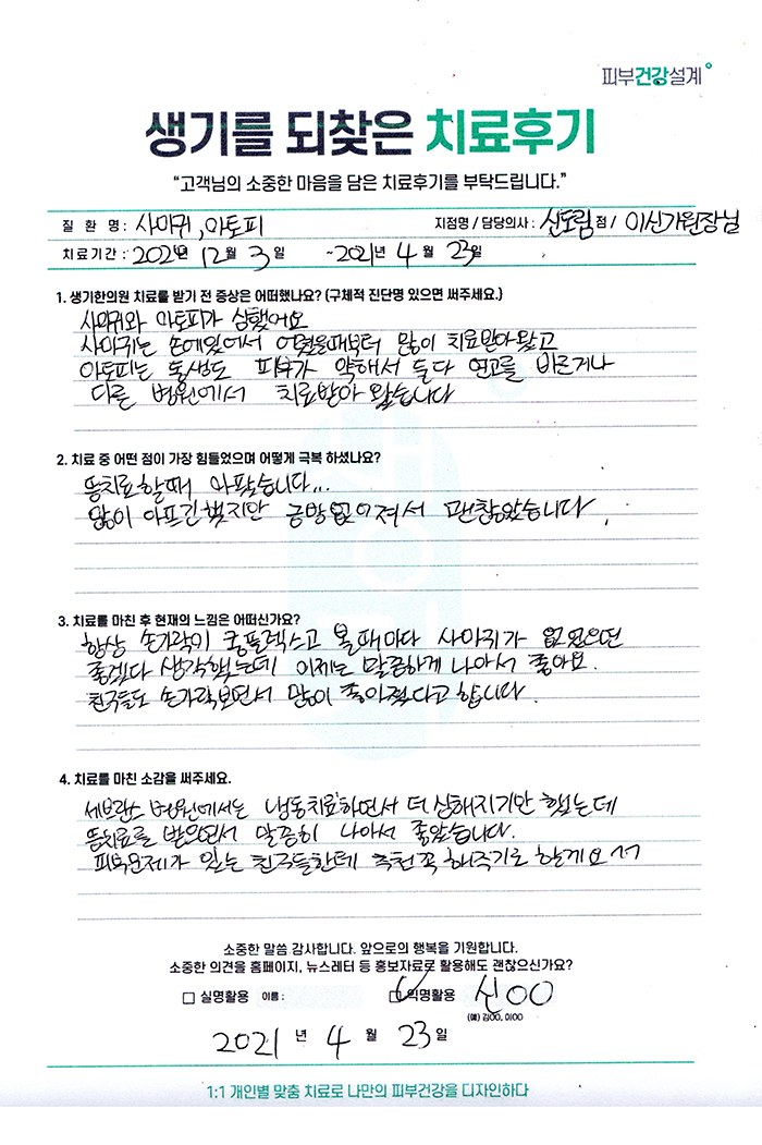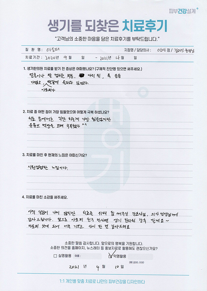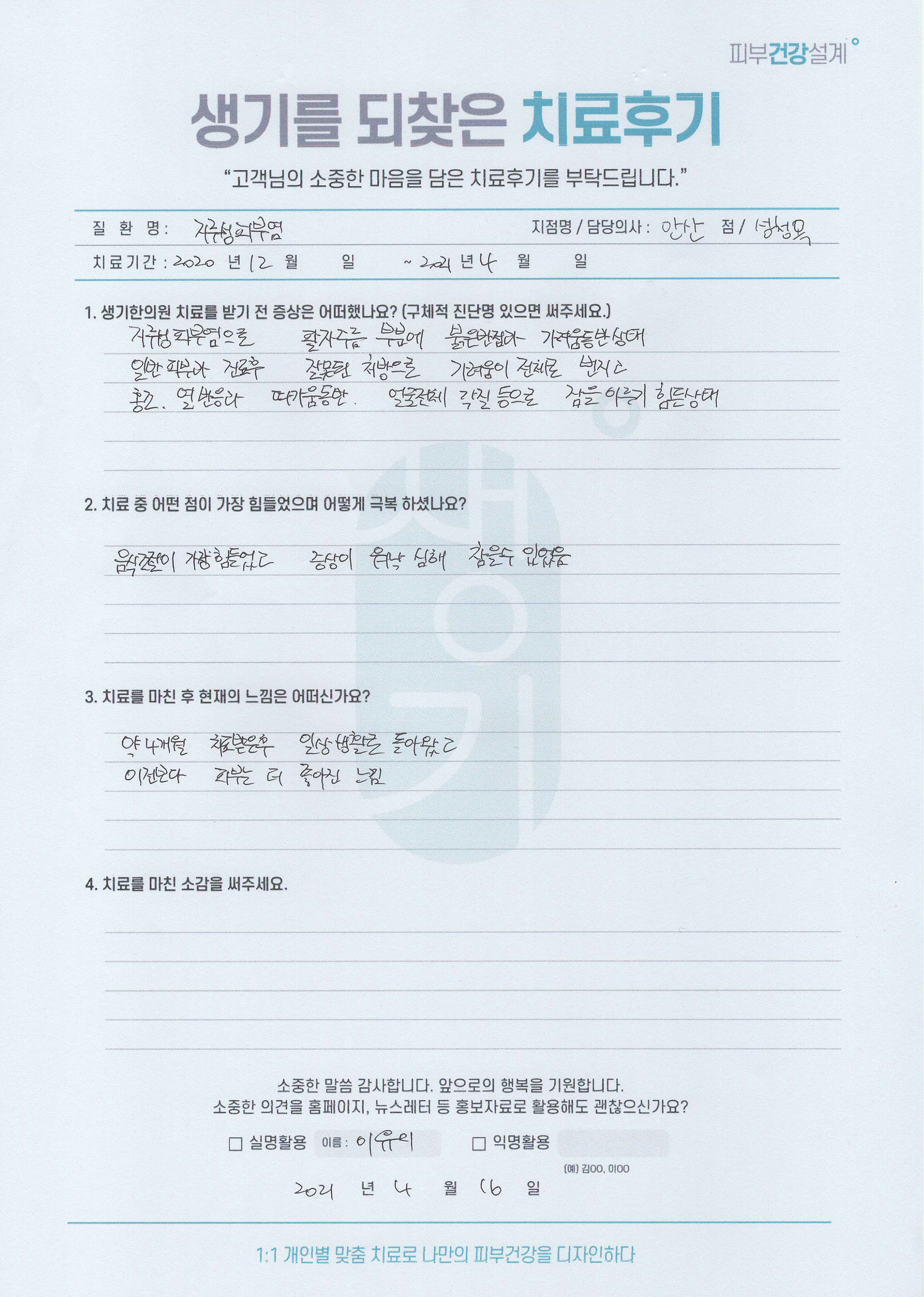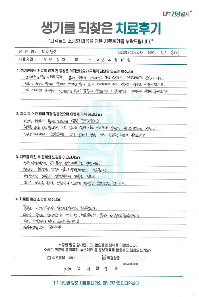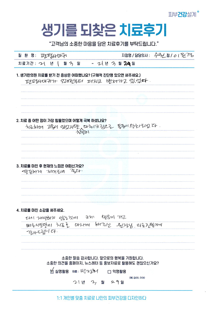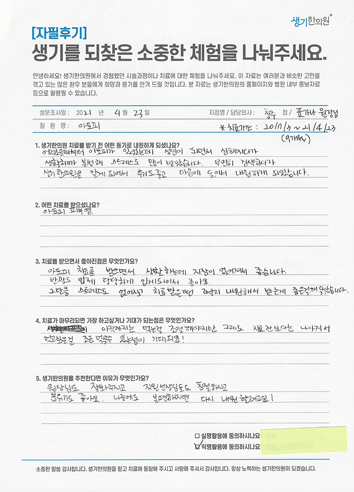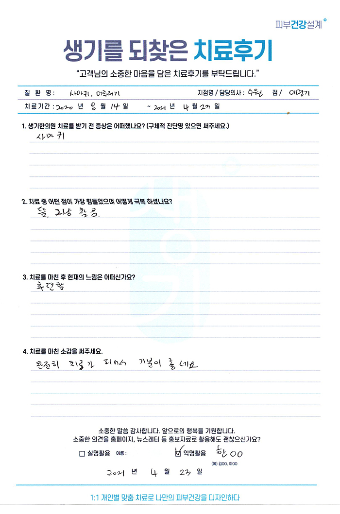 생기한의원과 함께하신 생생한 자필 및 영상 후기를 소개합니다.