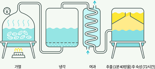전통 로법(露法)을 응용하여 추출액을 한 번 더 가열하고, 이때 발생하는 증기를 냉각시켜