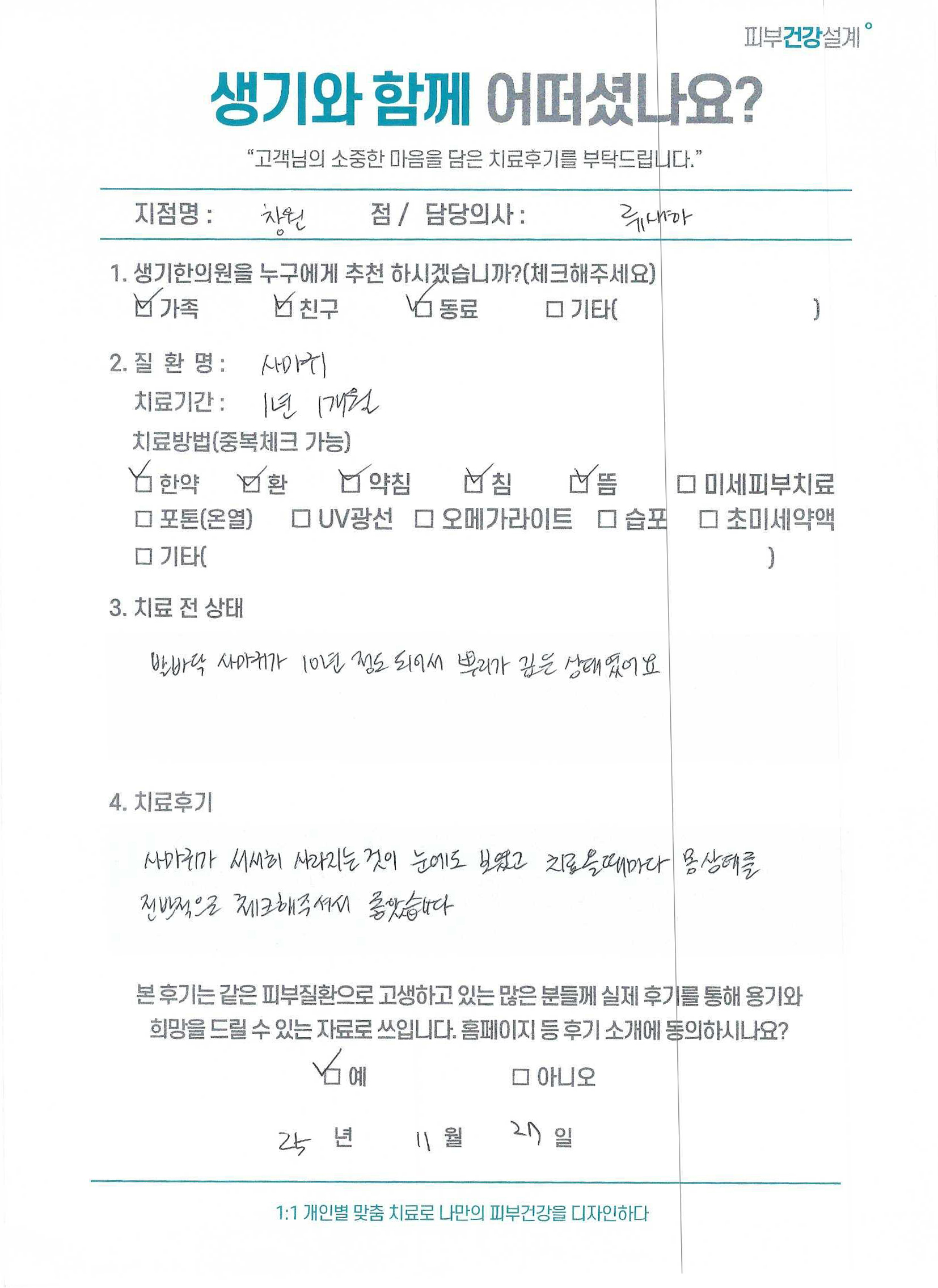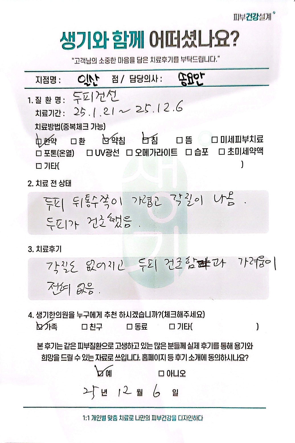 생기한의원과 함께하신 생생한 자필 및 영상 후기를 소개합니다.