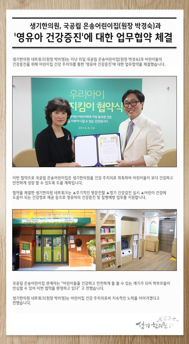생기한의원, 국공립 은송어린이집(원장 박경숙)..